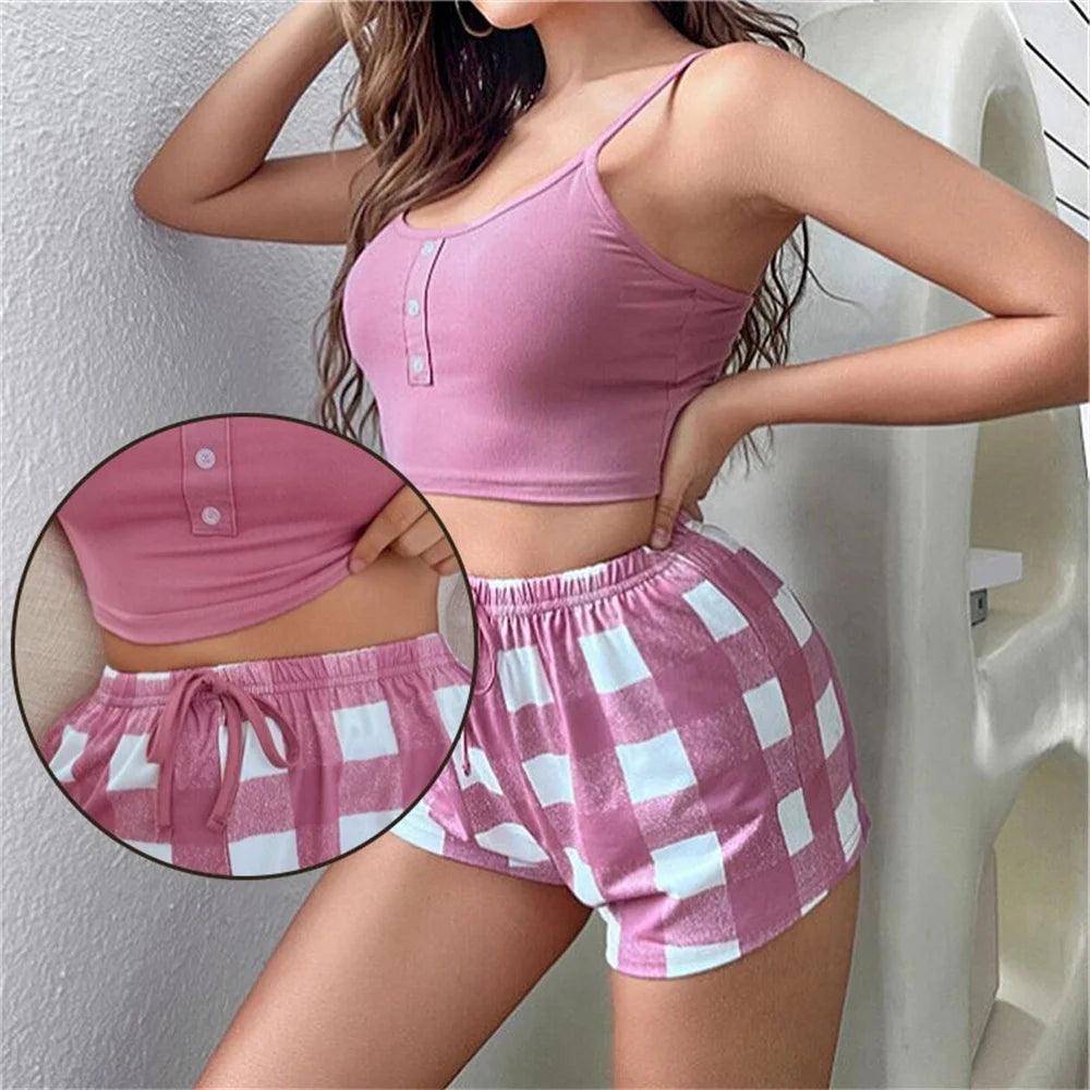 طقم بيجامات نوم بدون أكمام من ألياف البوليستر مطبوعة من قطعتين
