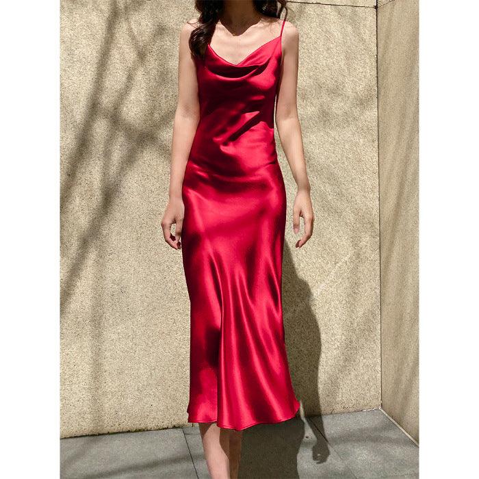 فستان صيفي بدون أكمام من الحرير والساتان الأسيتات