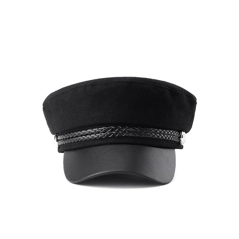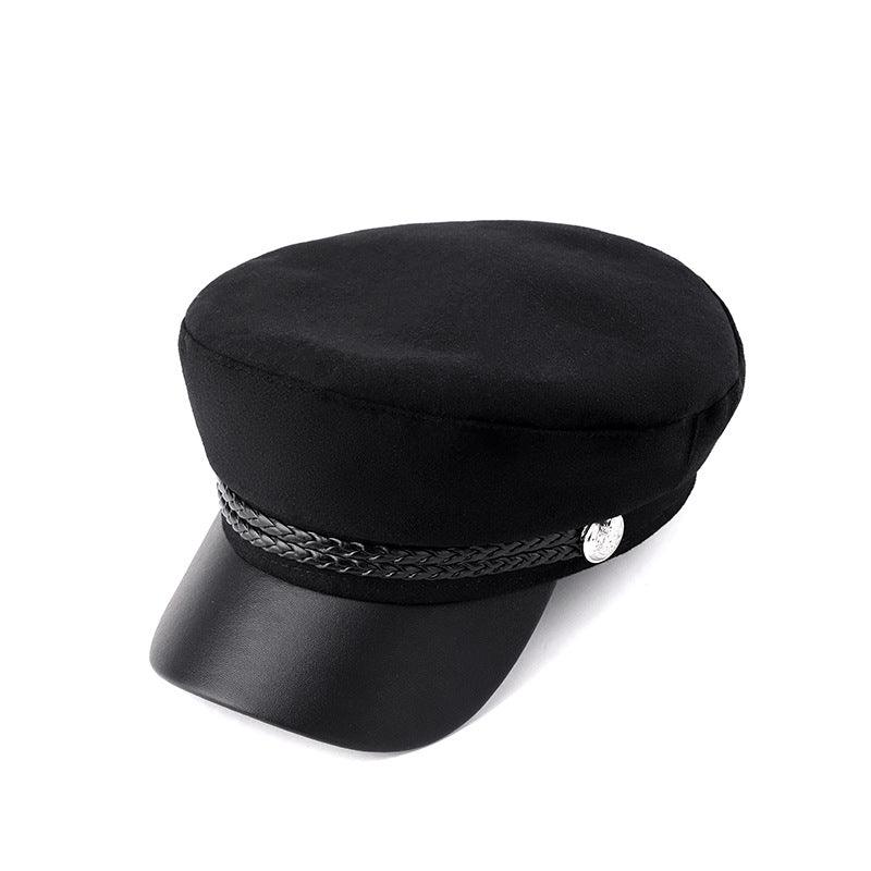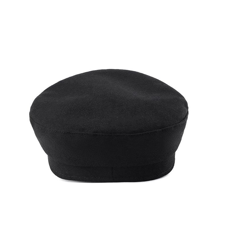 قبعة بيريه سوداء مسطحة من الصوف باللون الأزرق الداكن البريطاني