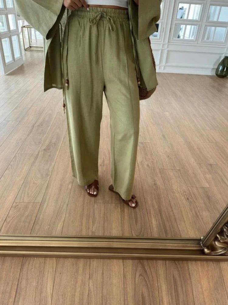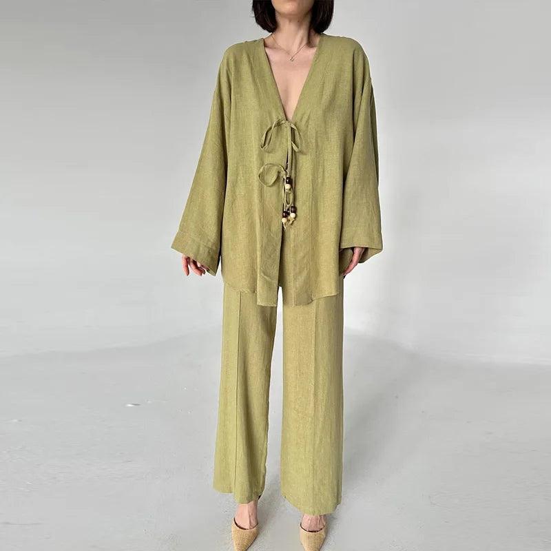طقم قميص وبنطال كاجوال مزين بالخرز للنساء