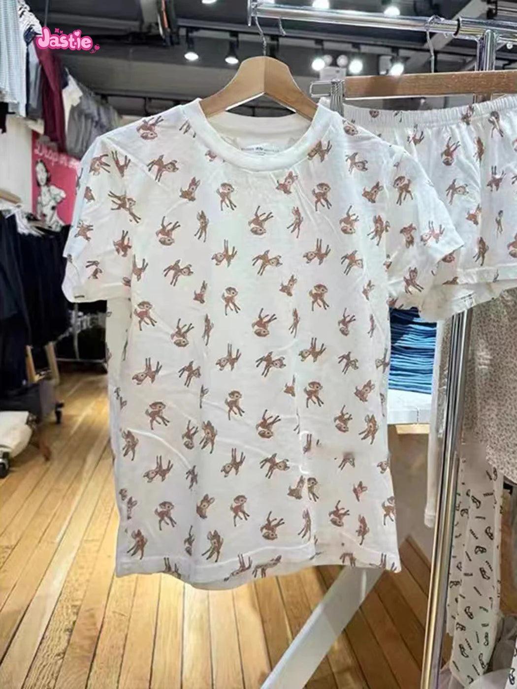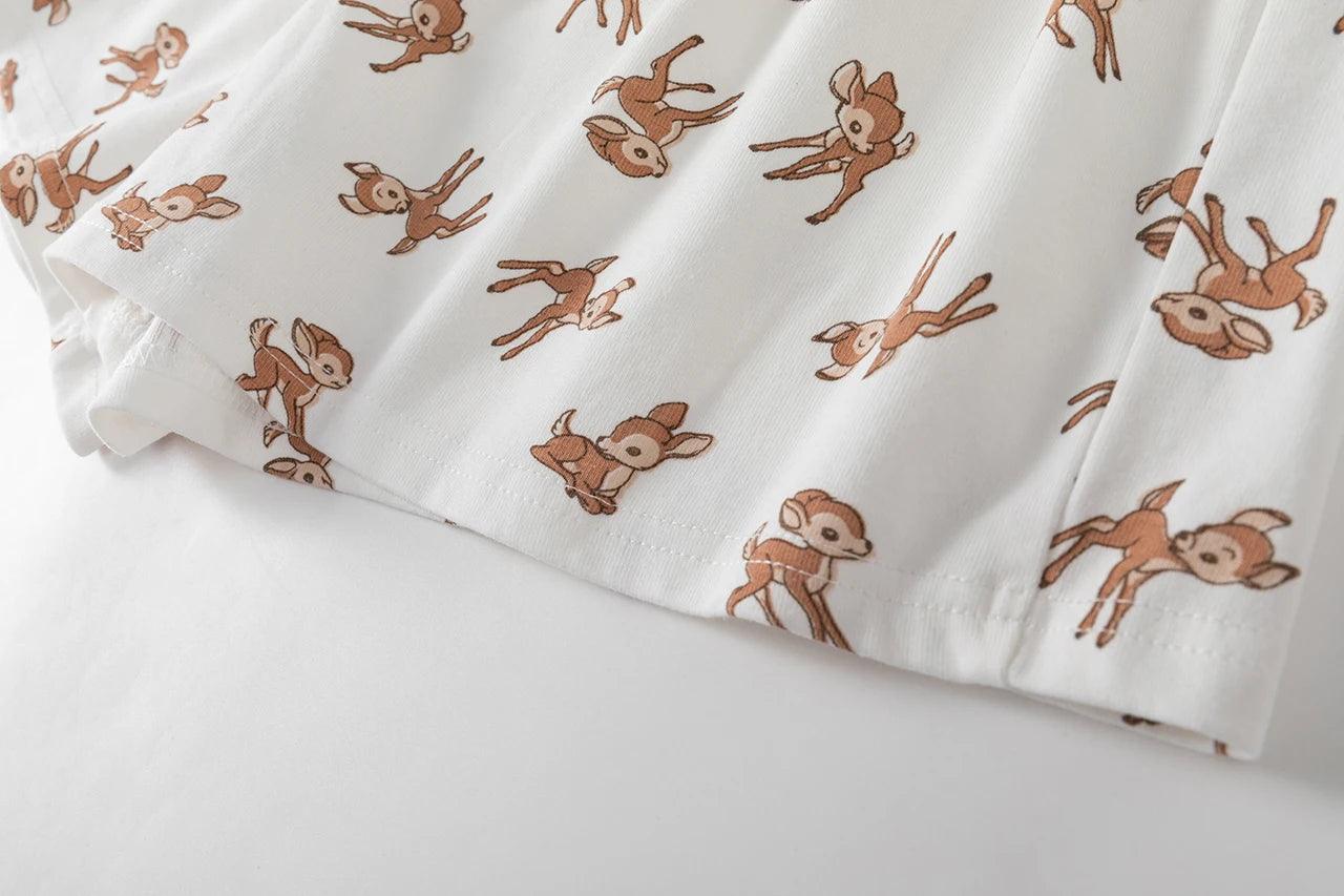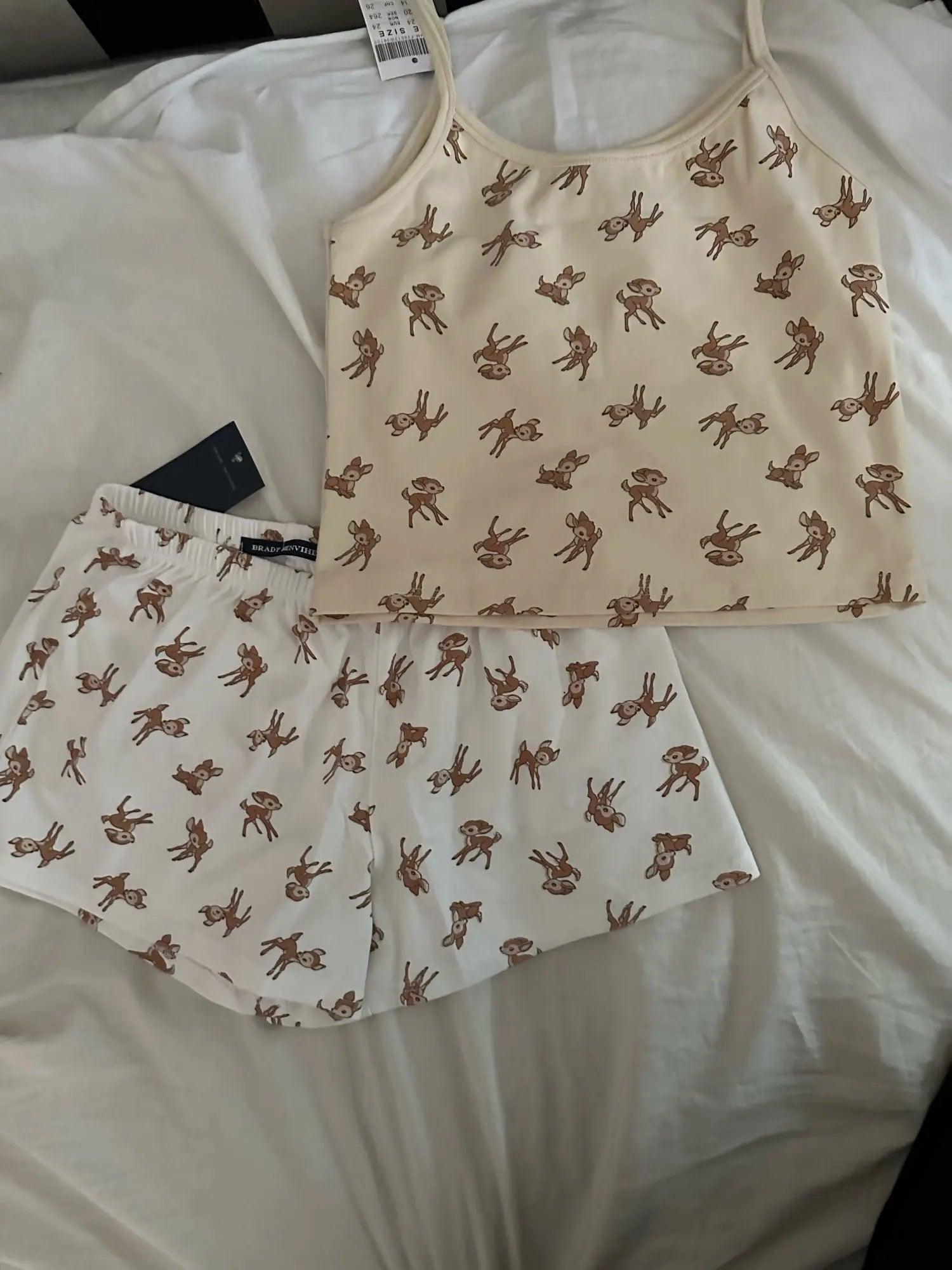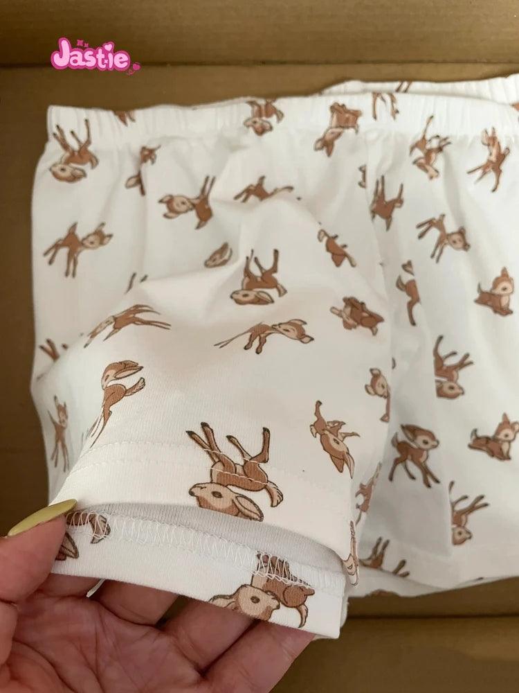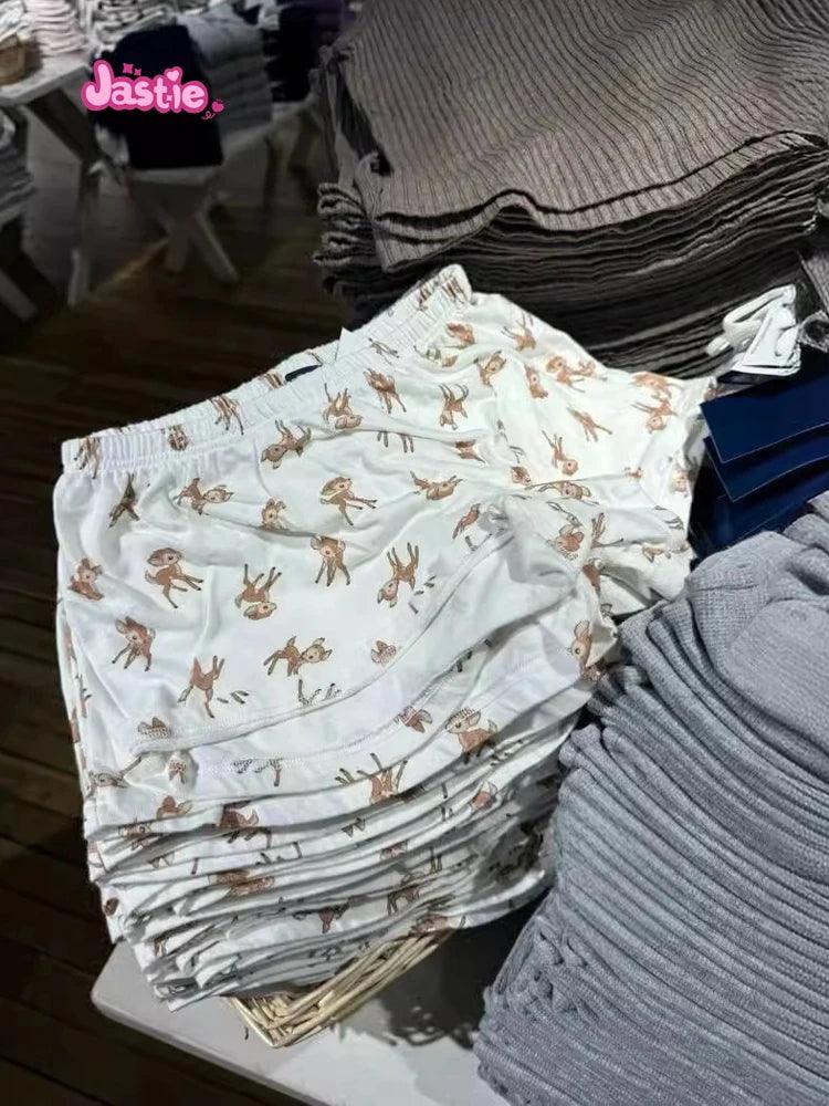 شورت رياضي منزلي أنيق بثلاثة أزرار بطبعة غزال وخصر مرن وشورت صيفي أنيق للنساء ملابس نوم كاجوال أنيقة