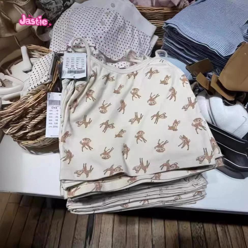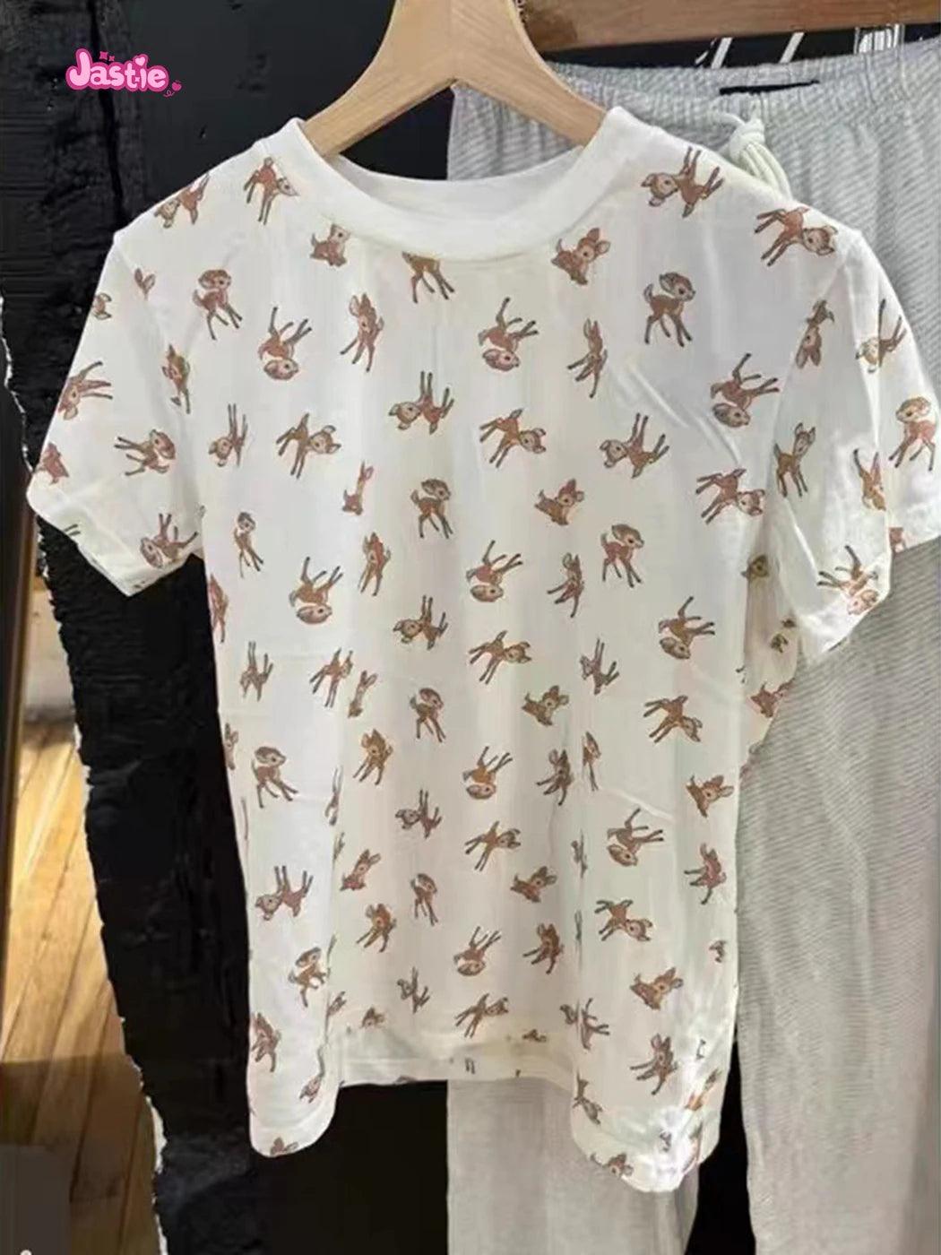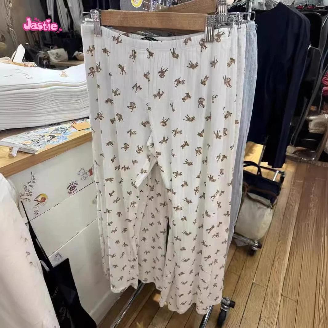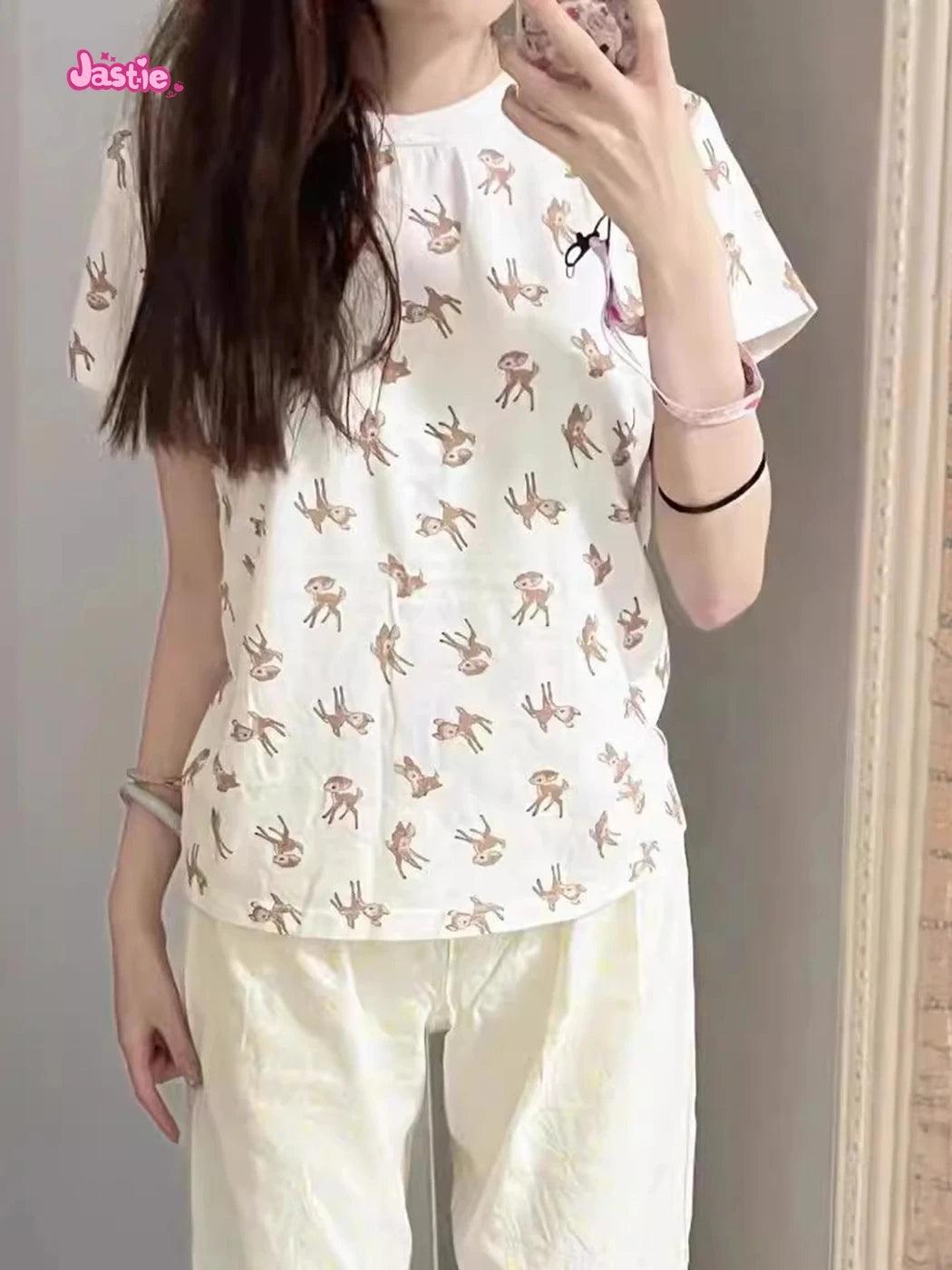شورت رياضي منزلي أنيق بثلاثة أزرار بطبعة غزال وخصر مرن وشورت صيفي أنيق للنساء ملابس نوم كاجوال أنيقة