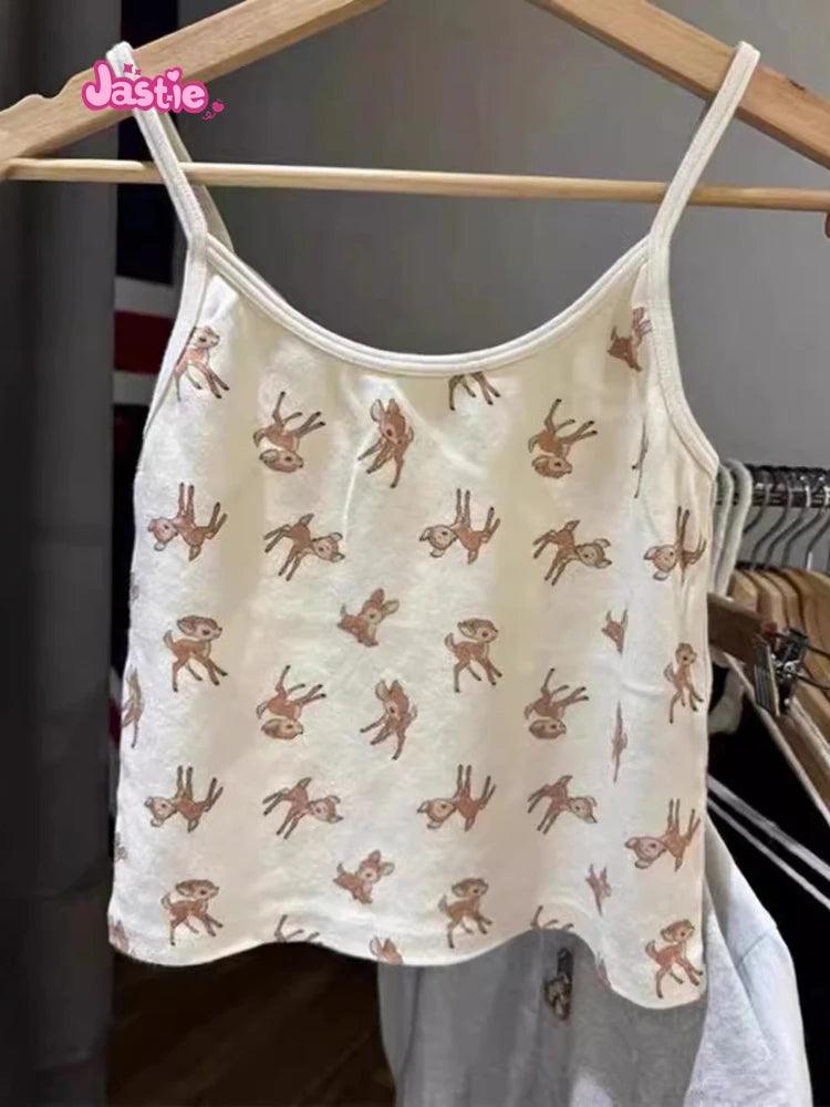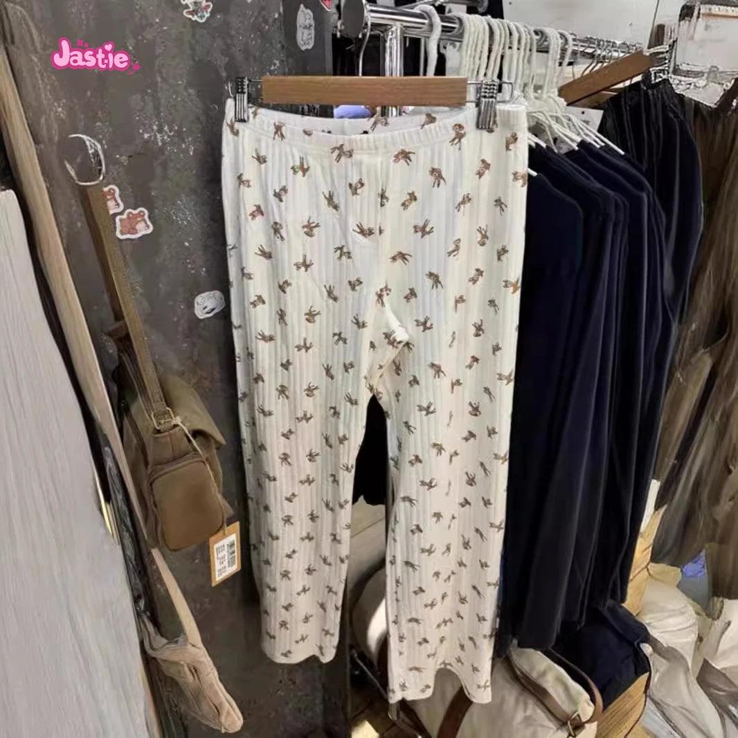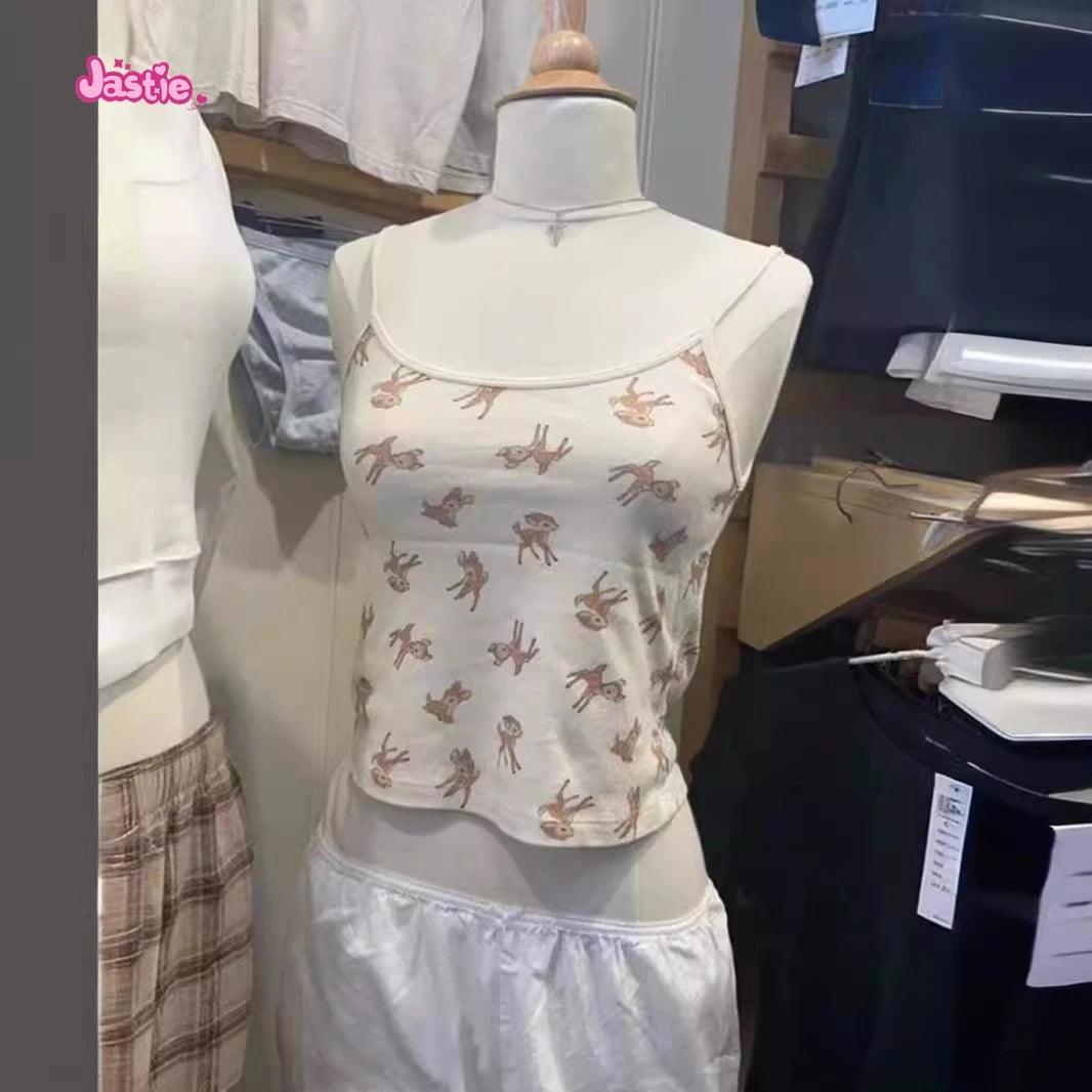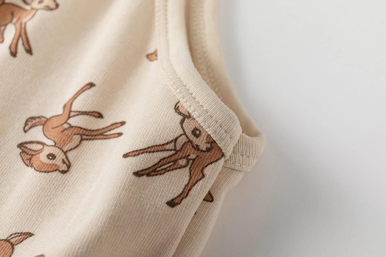 شورت رياضي منزلي أنيق بثلاثة أزرار بطبعة غزال وخصر مرن وشورت صيفي أنيق للنساء ملابس نوم كاجوال أنيقة