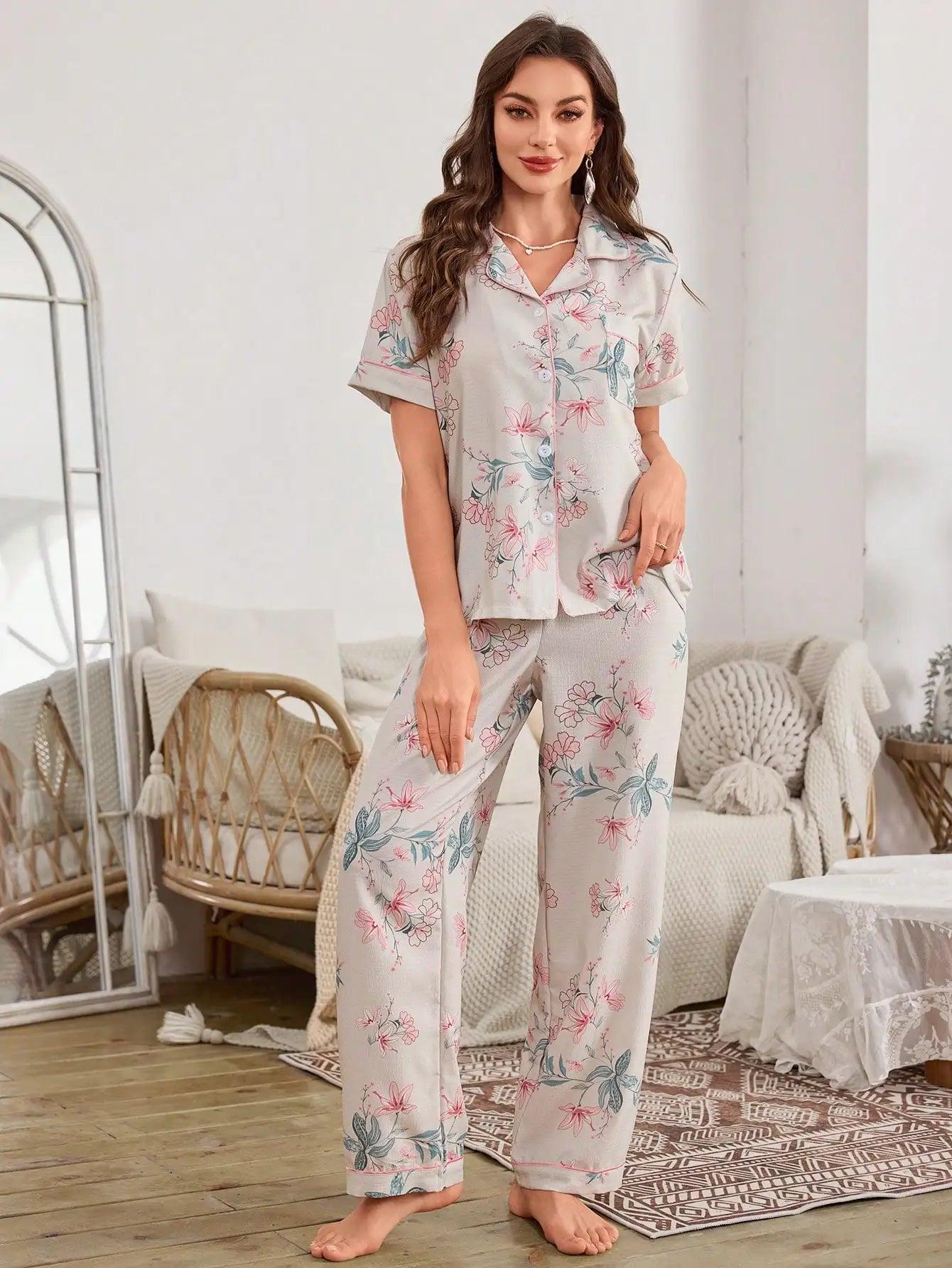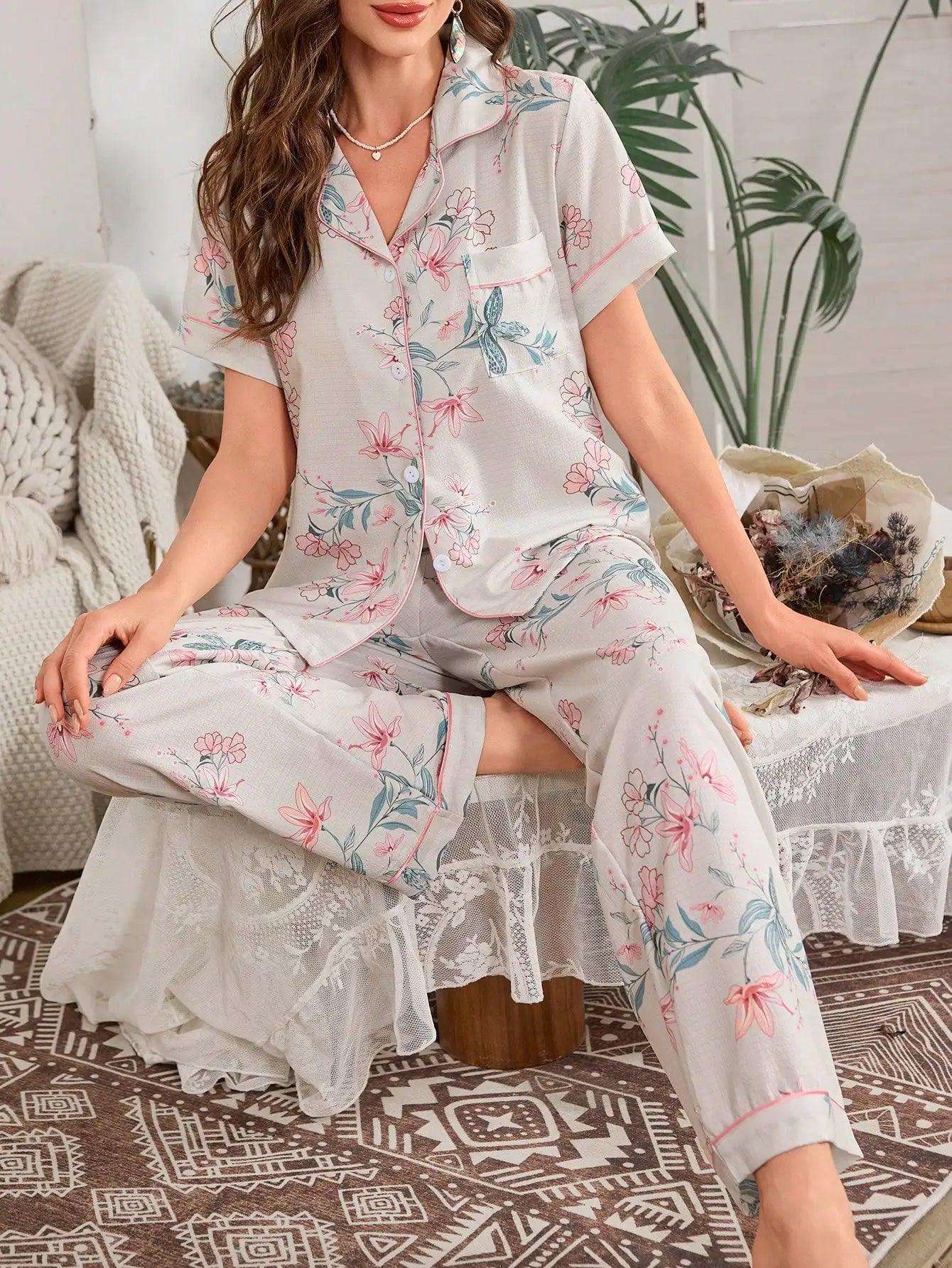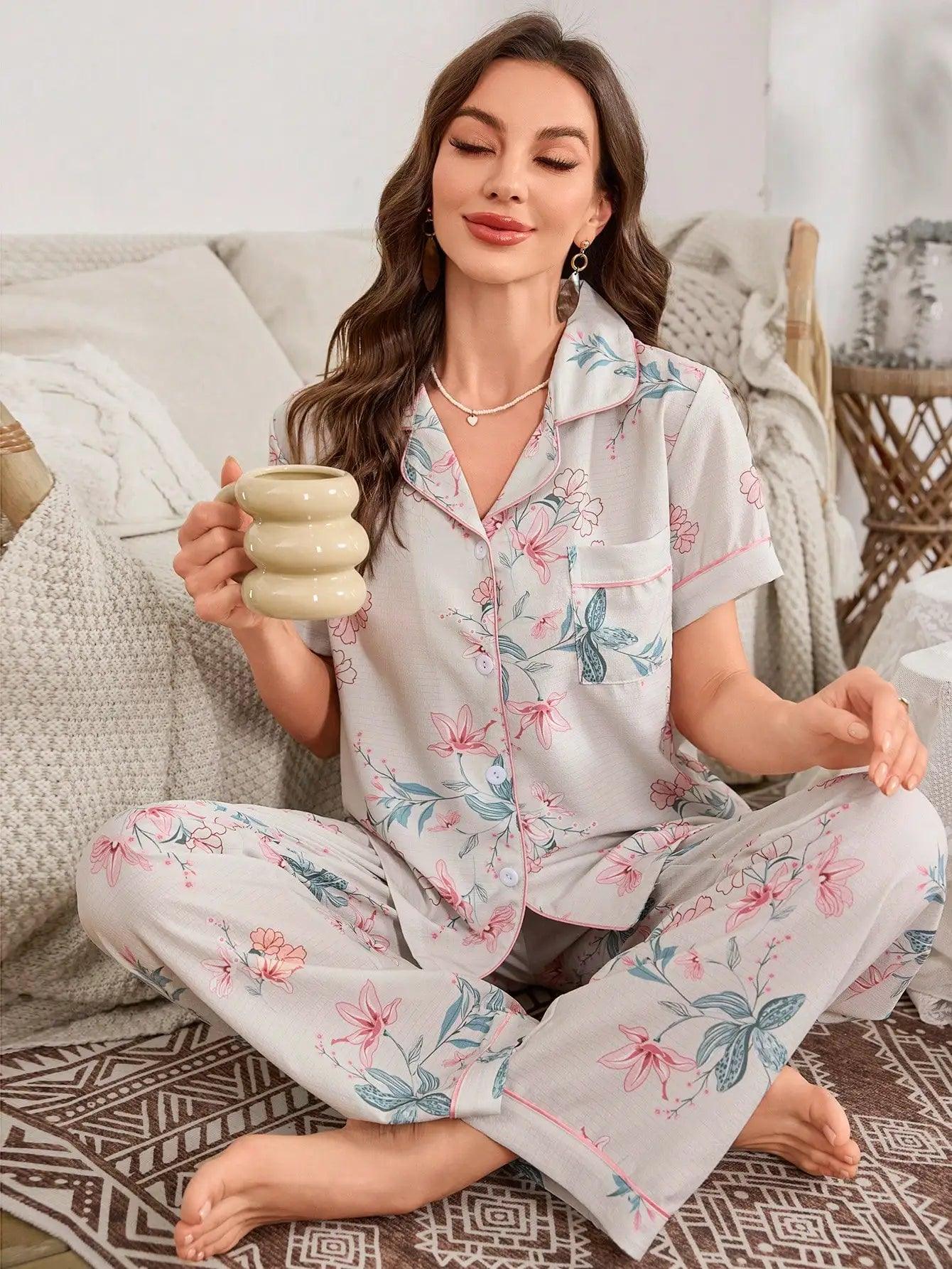طقم بيجامة صيفي أنيق للنساء بأكمام قصيرة من قماش الكريب الفقاعي