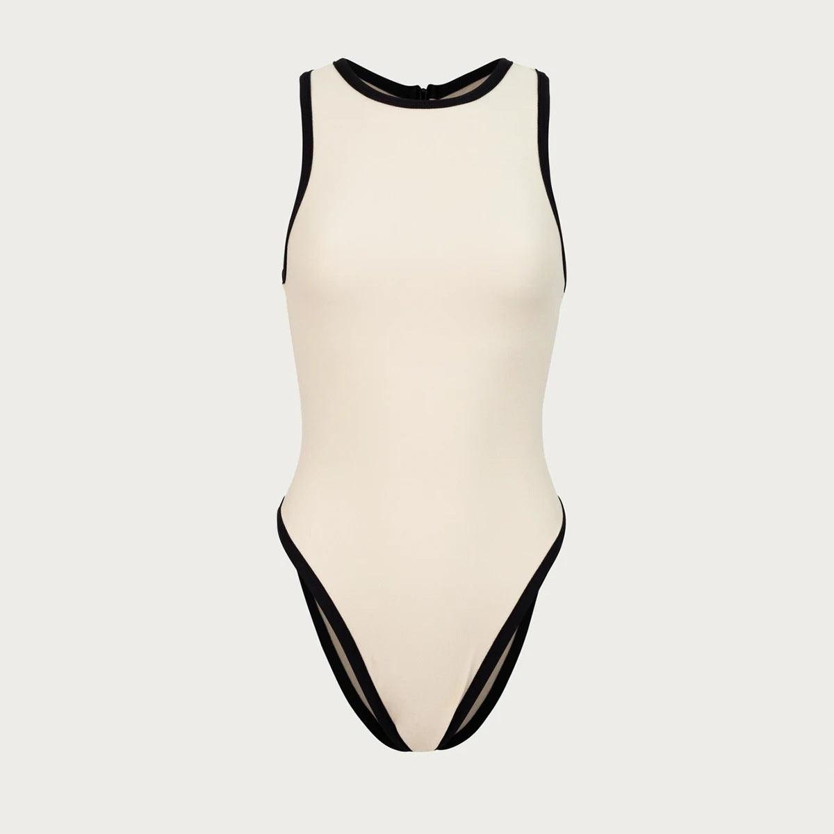 ملابس سباحة من قطعة واحدة باللونين الأسود والأبيض