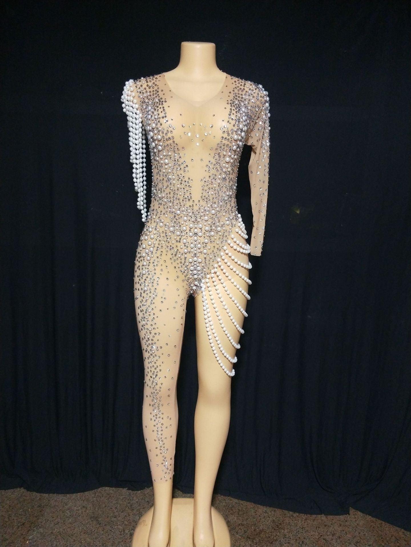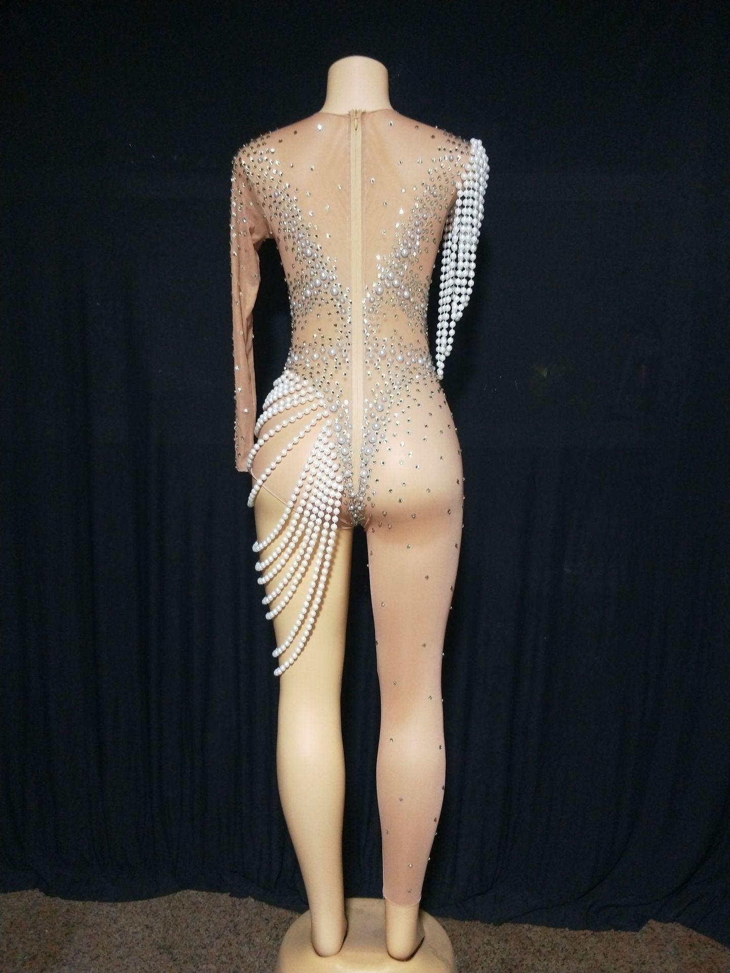 جمبسوت ضيق مطاطي بقلادة من خرز حجر الراين