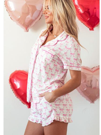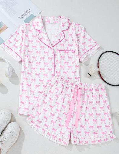 طقم بيجامة بأكمام قصيرة وشورت مطوي