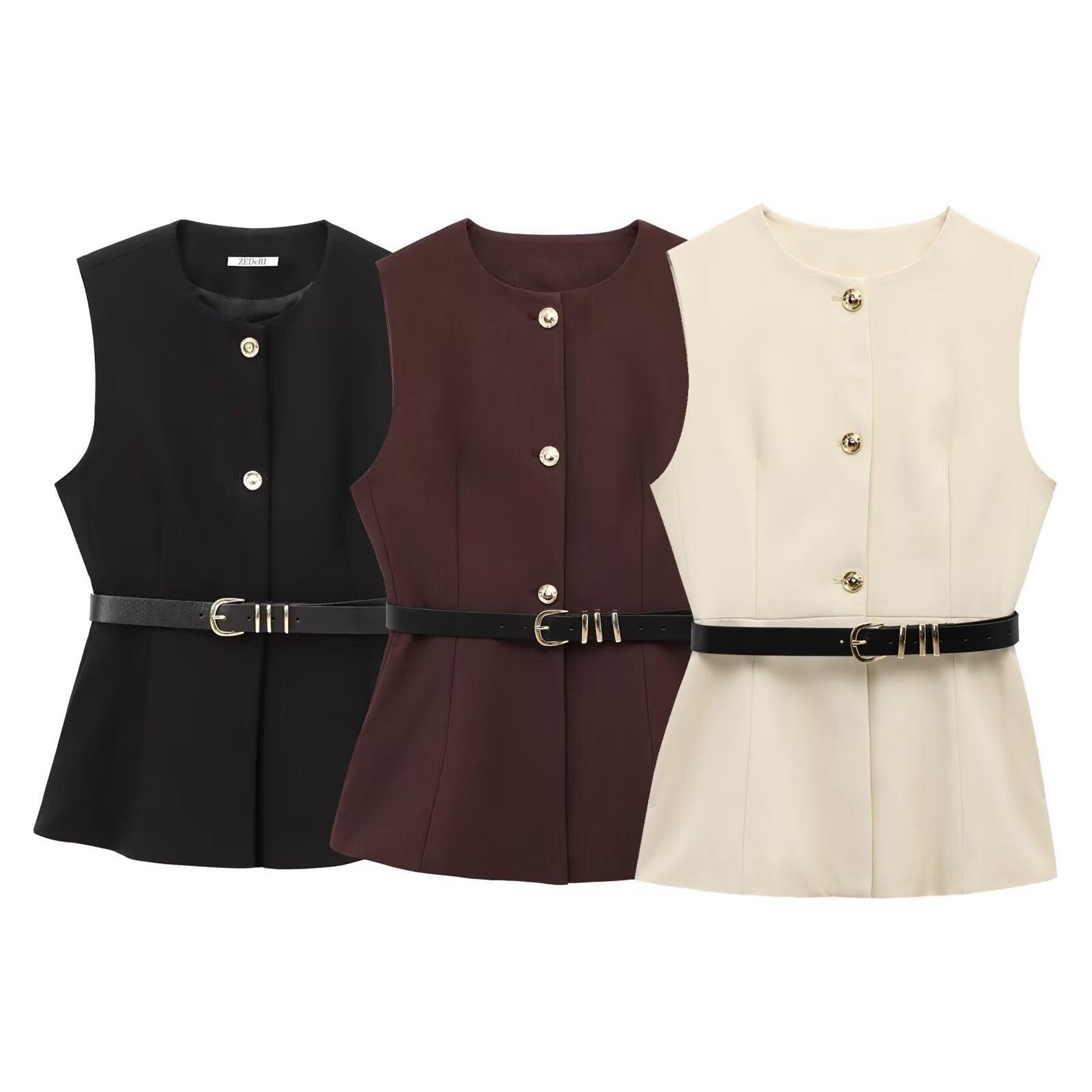 Belt Simple Sleeveless Shirt