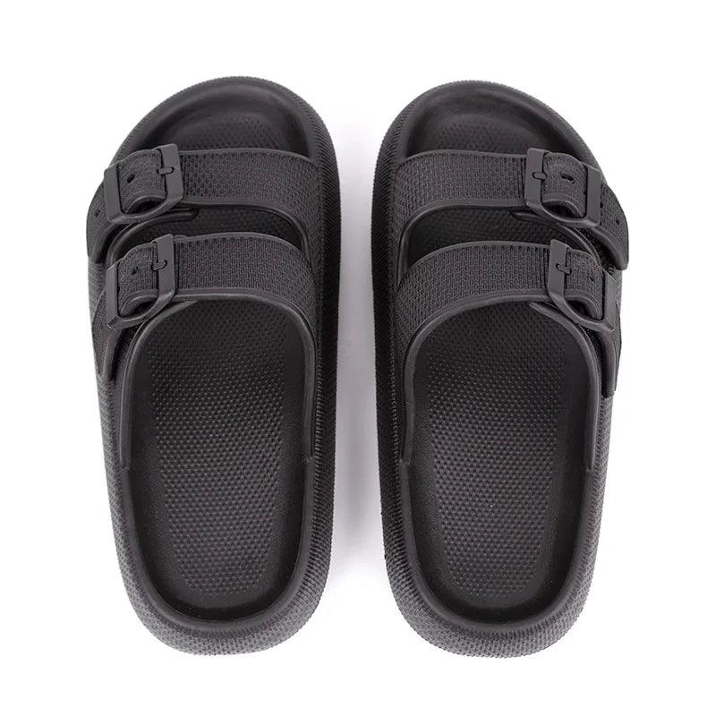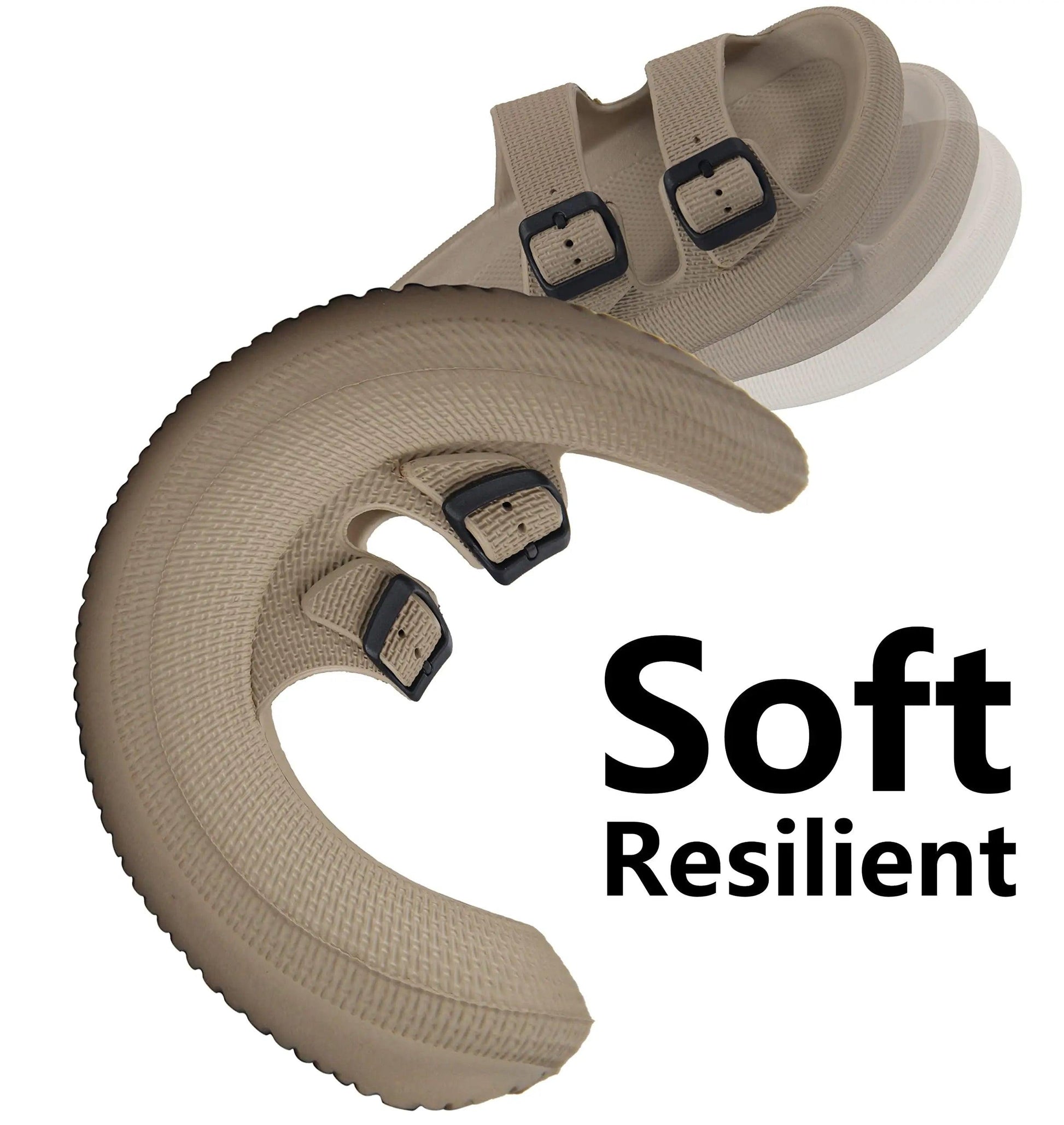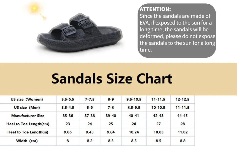 Crestar Sandals for Women and Men Summer Fashion Double Buckle Adjustable Slides Outdoor Soft Pillow Slippers EVA Flat Sandals