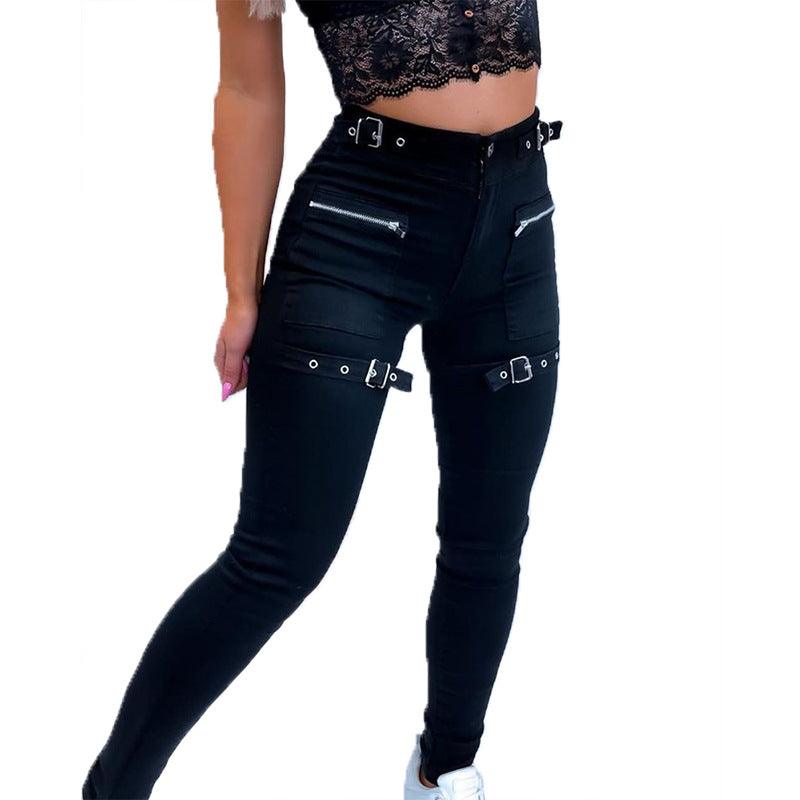 High waisted button-up solid color Skinny Pants Ladies casual fashion link pocket leg pants