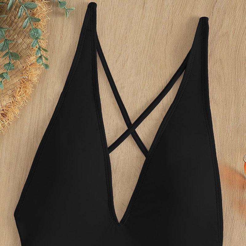 Deep V Beach Bikini Lace-up One-piece Swimsuit For Women