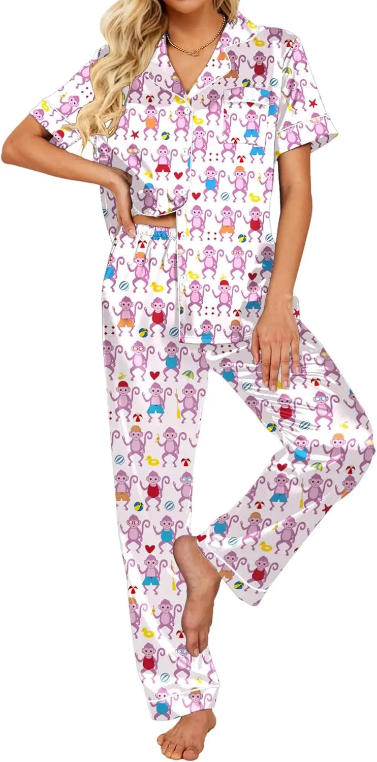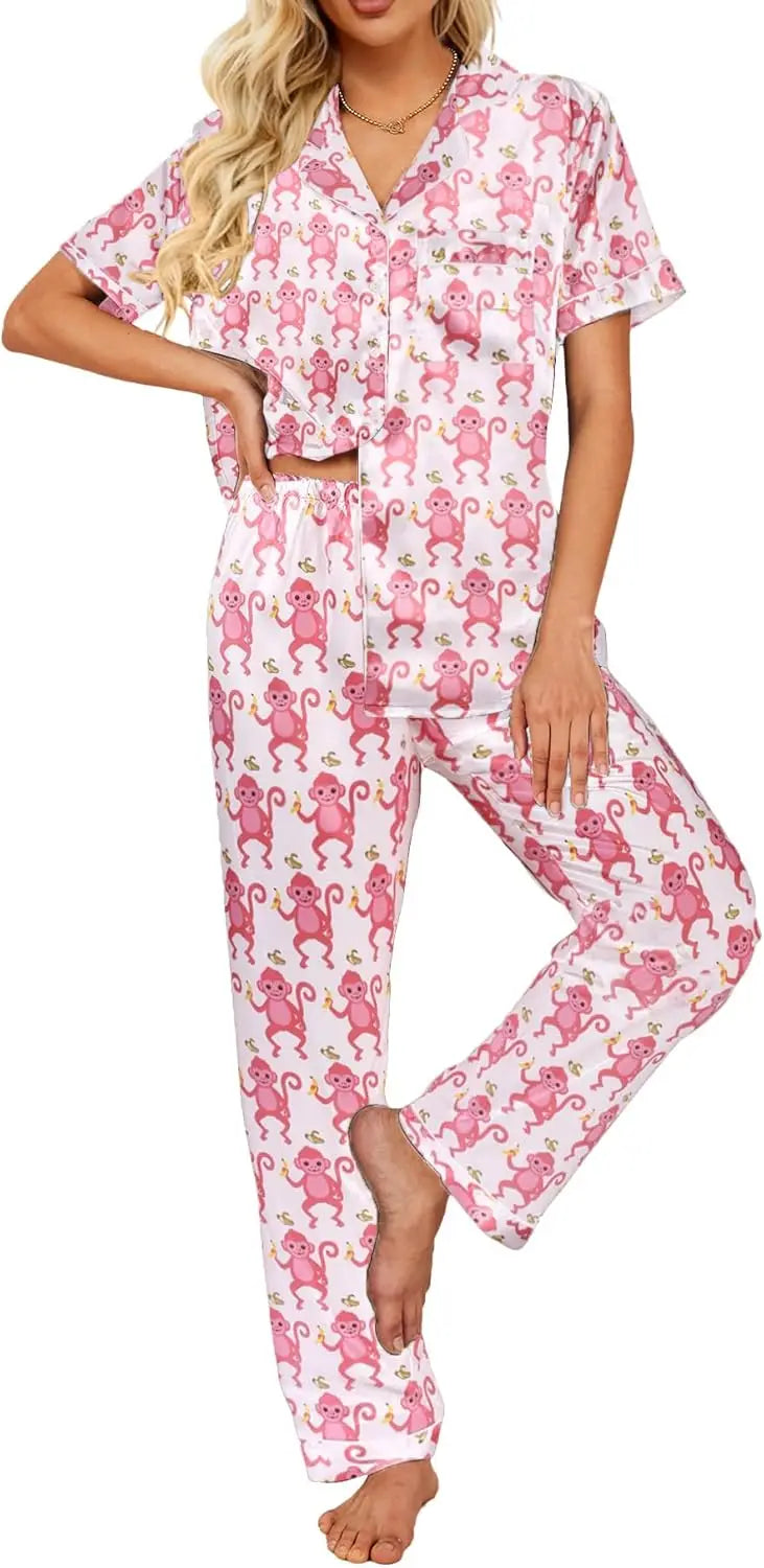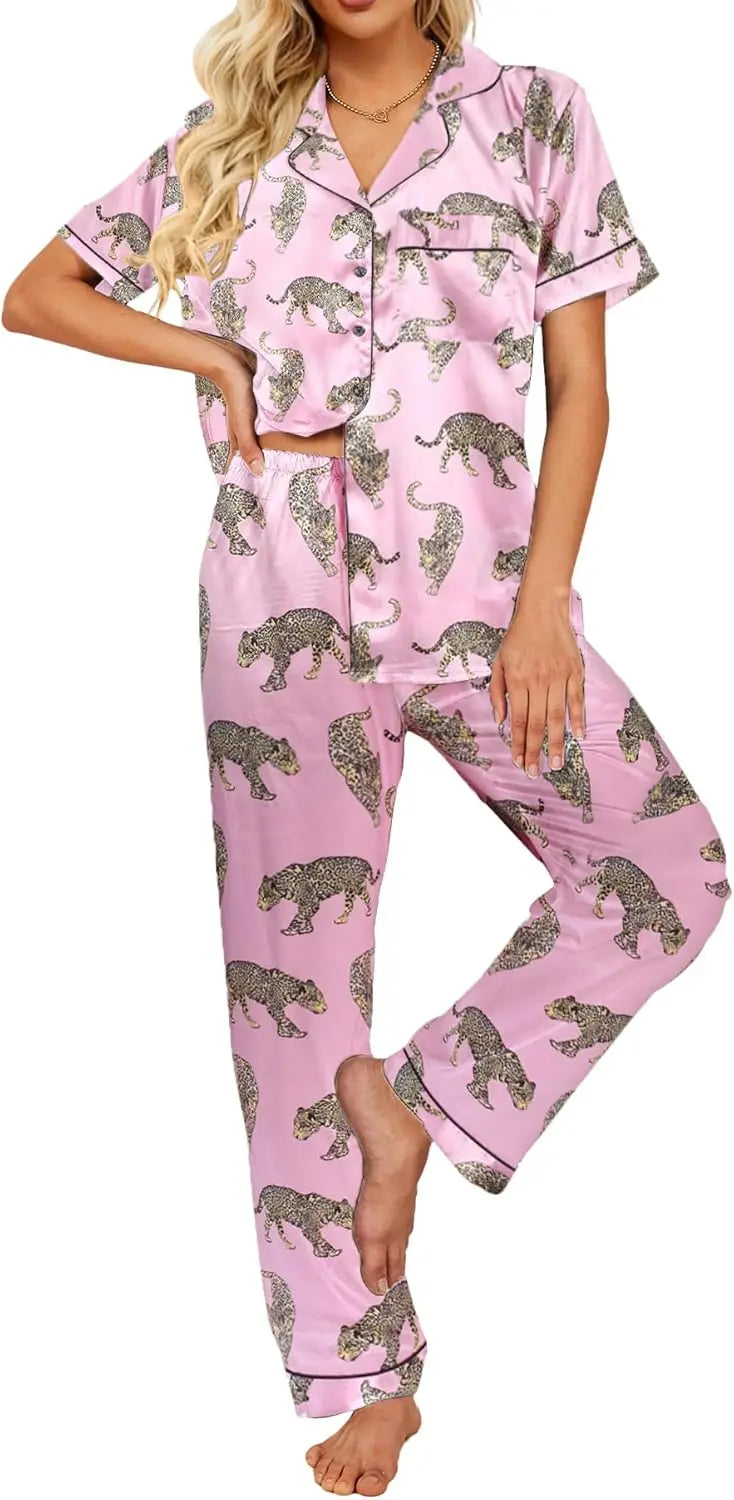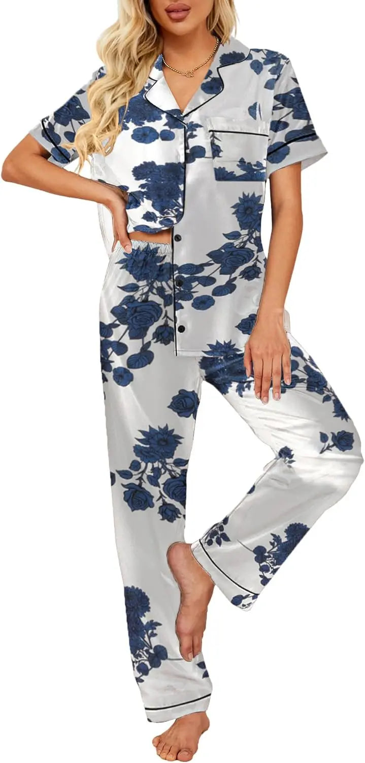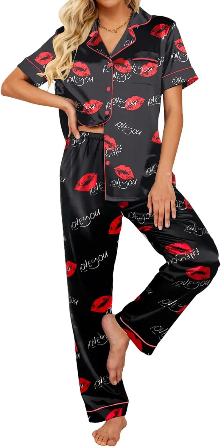 Ekouaer 2 Piece Satin Pajama Set Button Shirts and Pant Silk Pjs at Home
