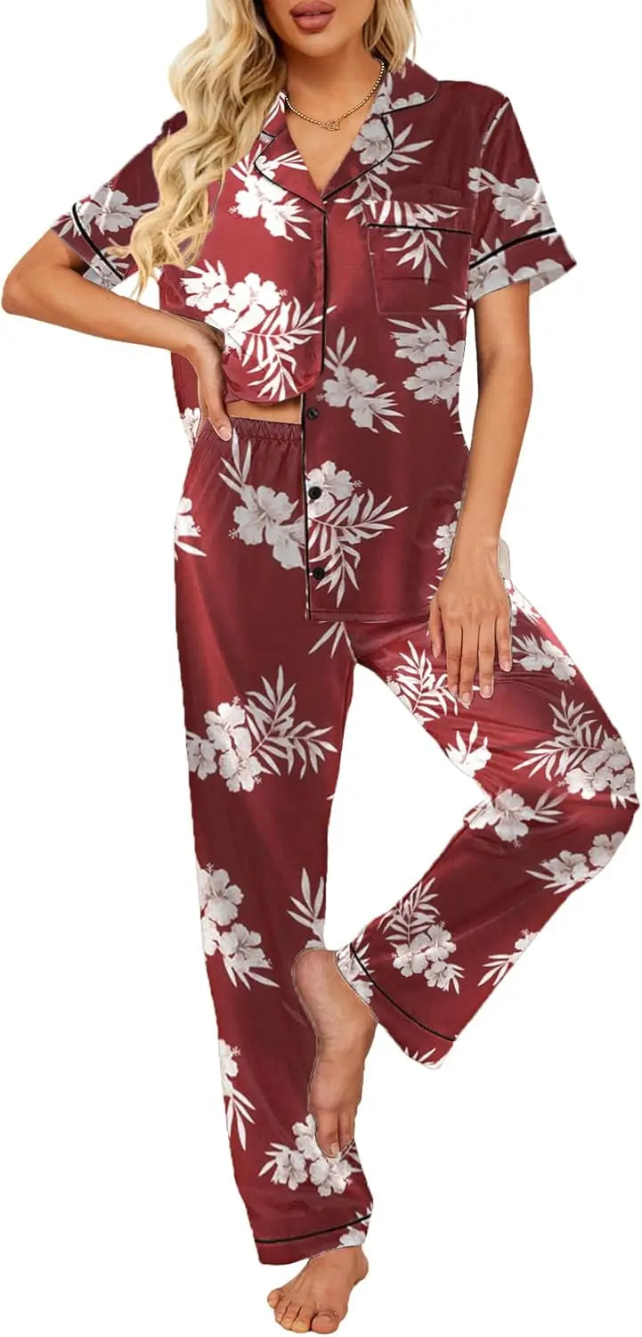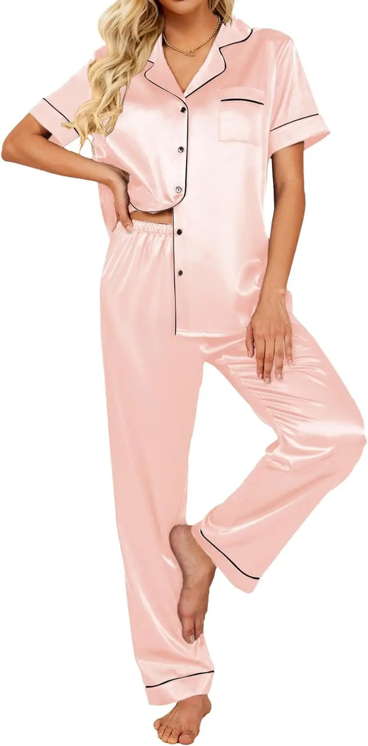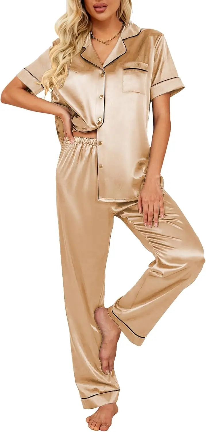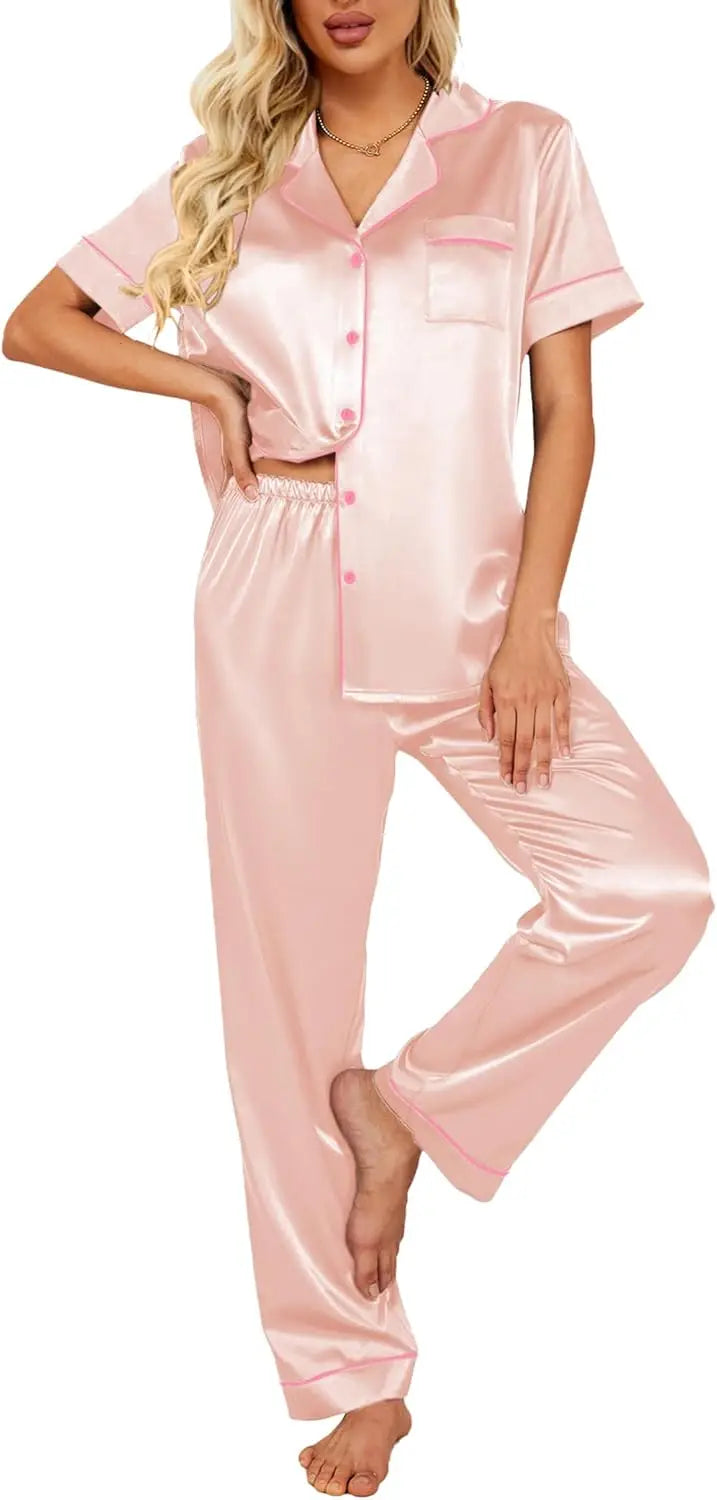 Ekouaer Women's Silk Pajama Set Button Down Short Sleeve Loungewear