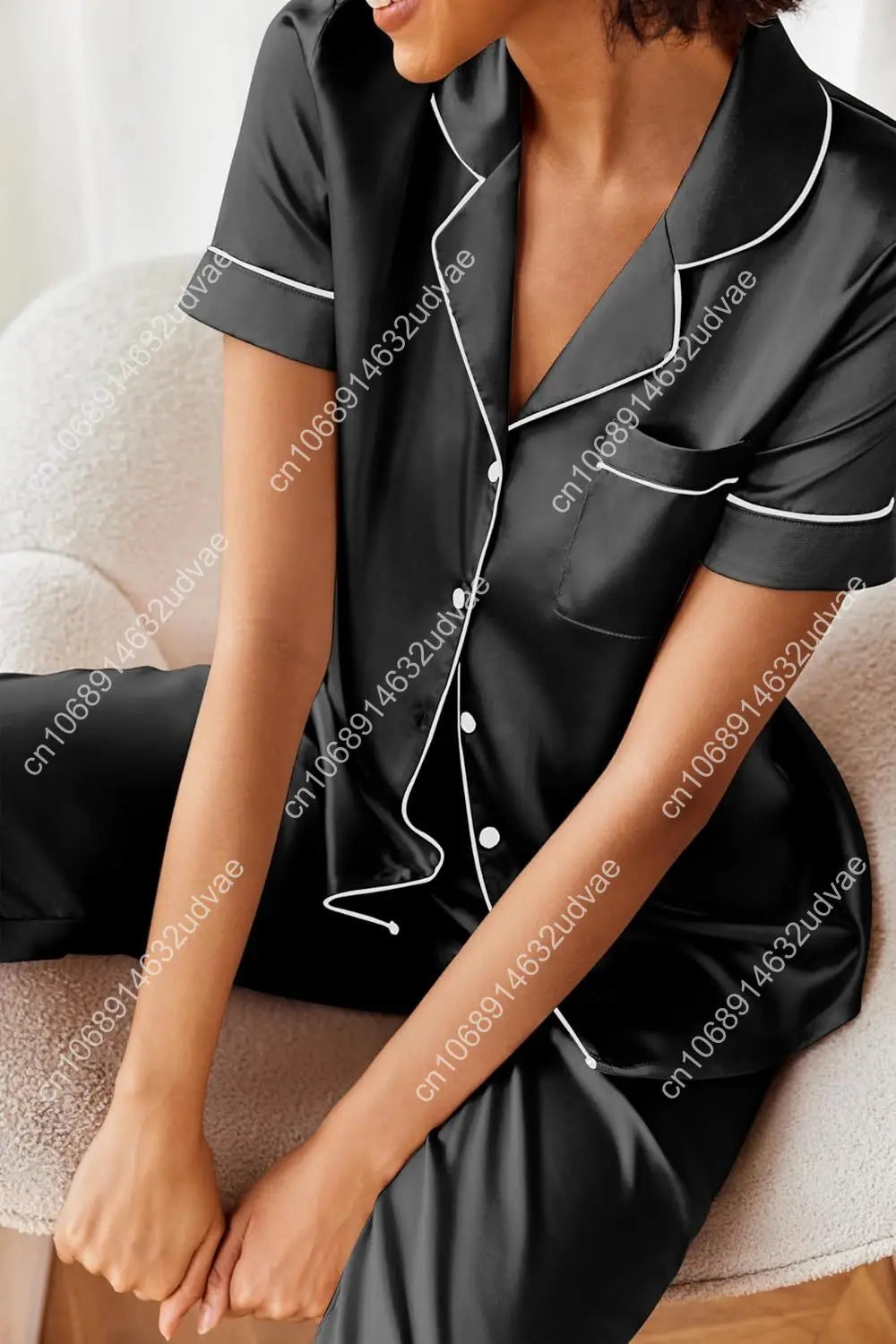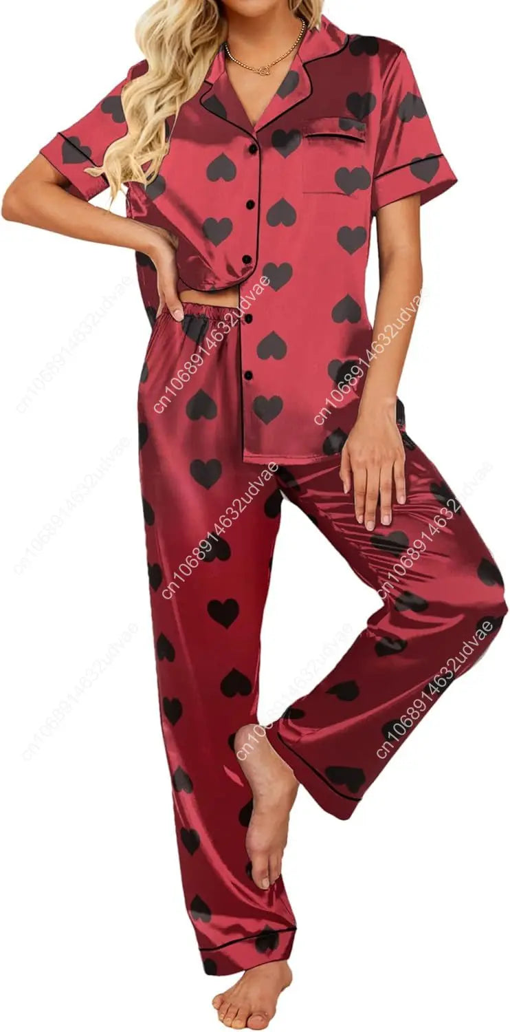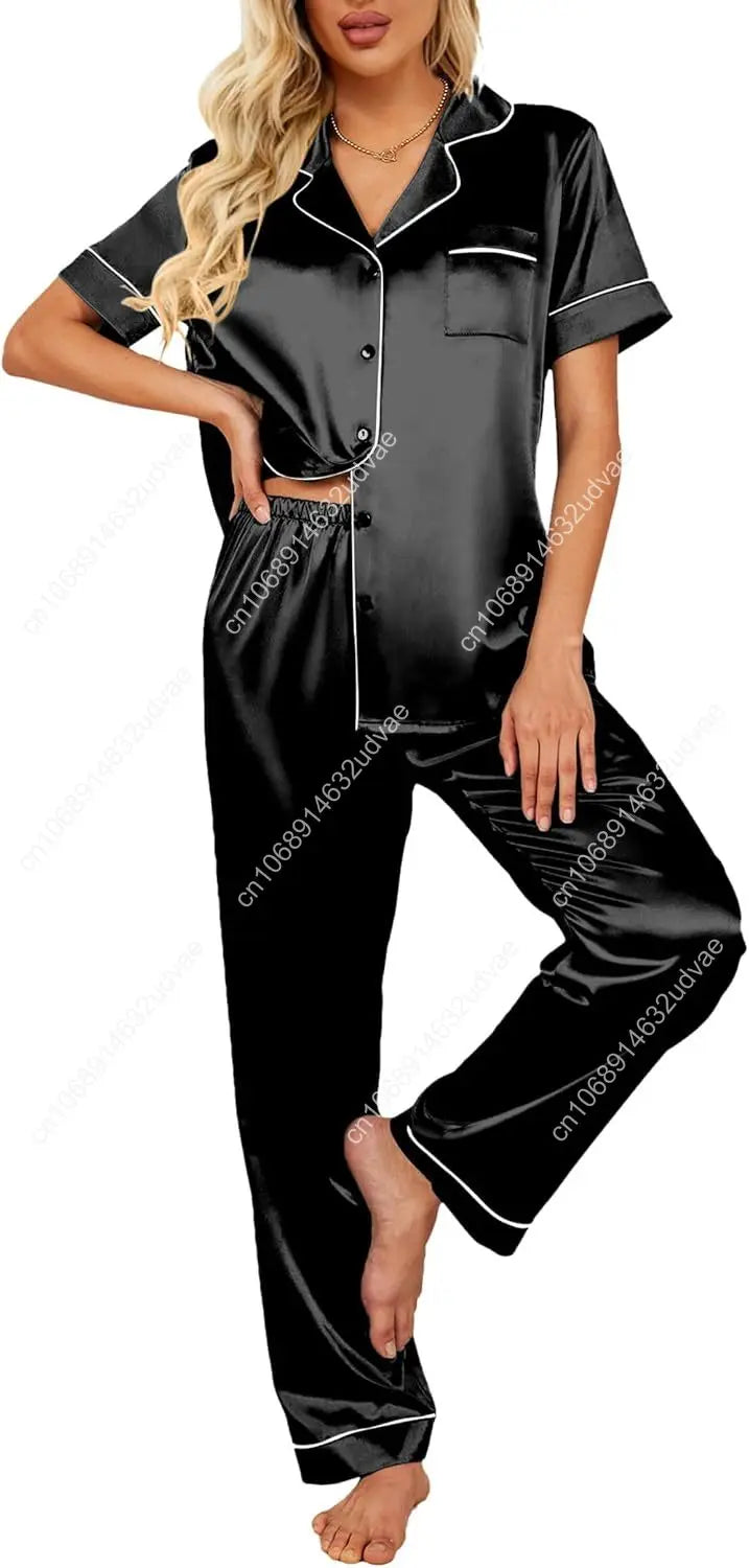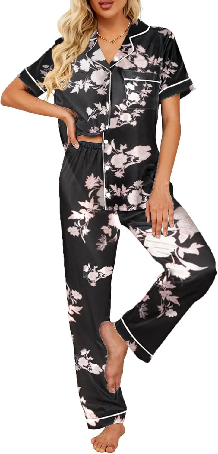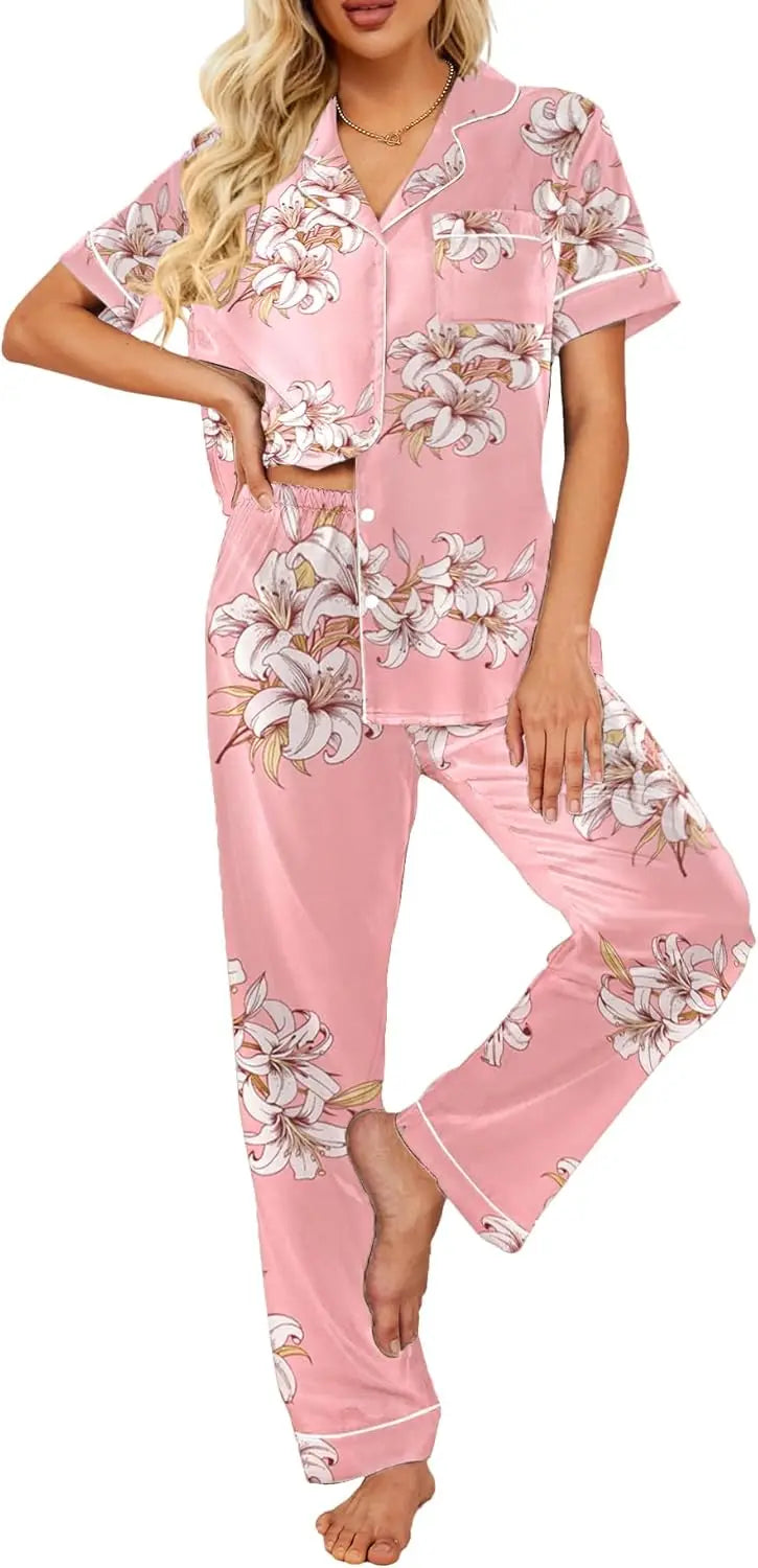 Ekouaer Women's Silk Pajama Set Button Down Short Sleeve Loungewear