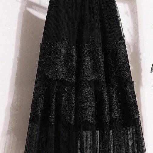 Embroidered Floral Lace Pleated A- Line Cake Dress Midi Skirt