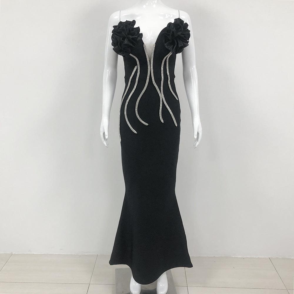 Socialite Flower Chain Strapless Long Type Evening Dress
