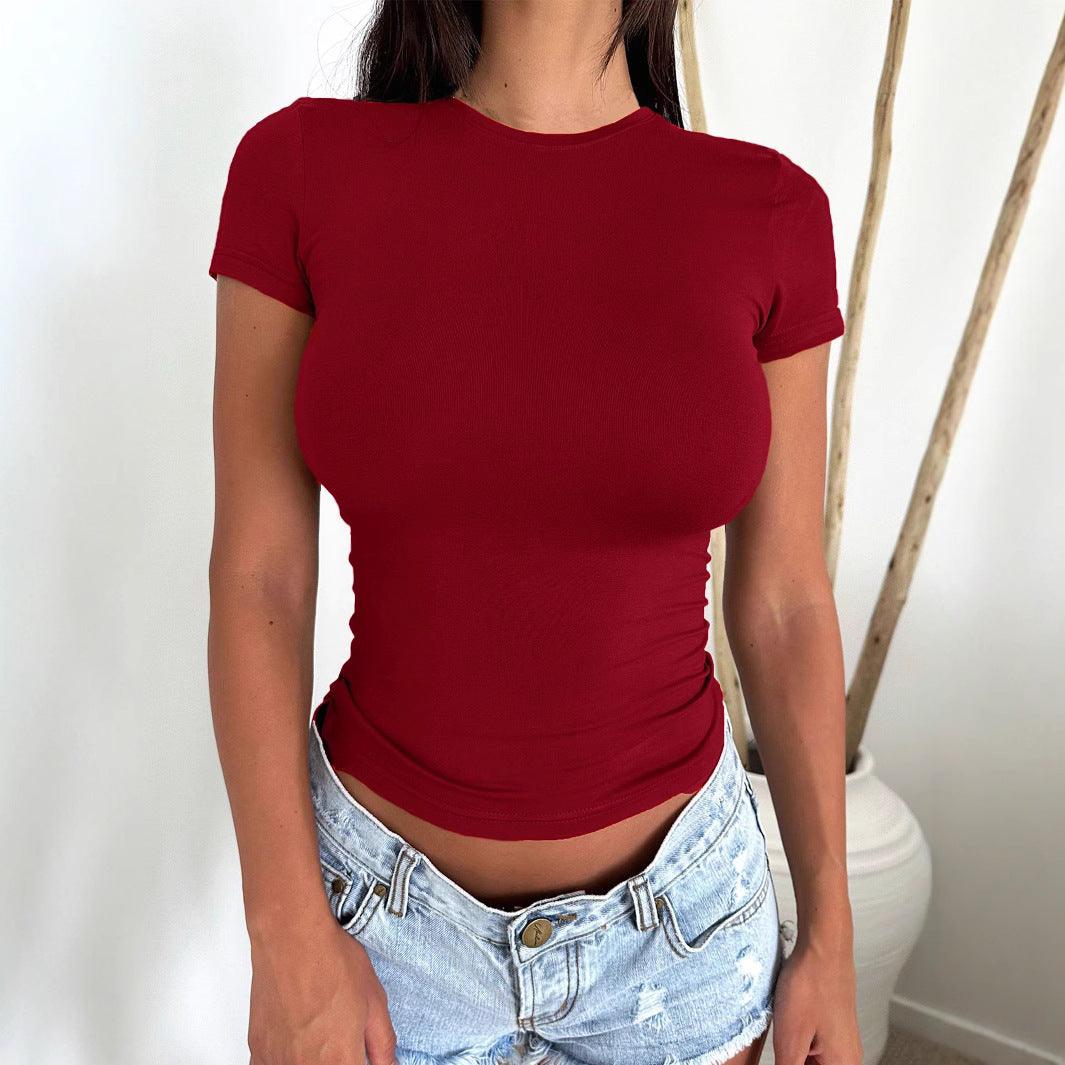 Sexy Hot Girl Slim-fit Slimming Solid Color Short Sleeve