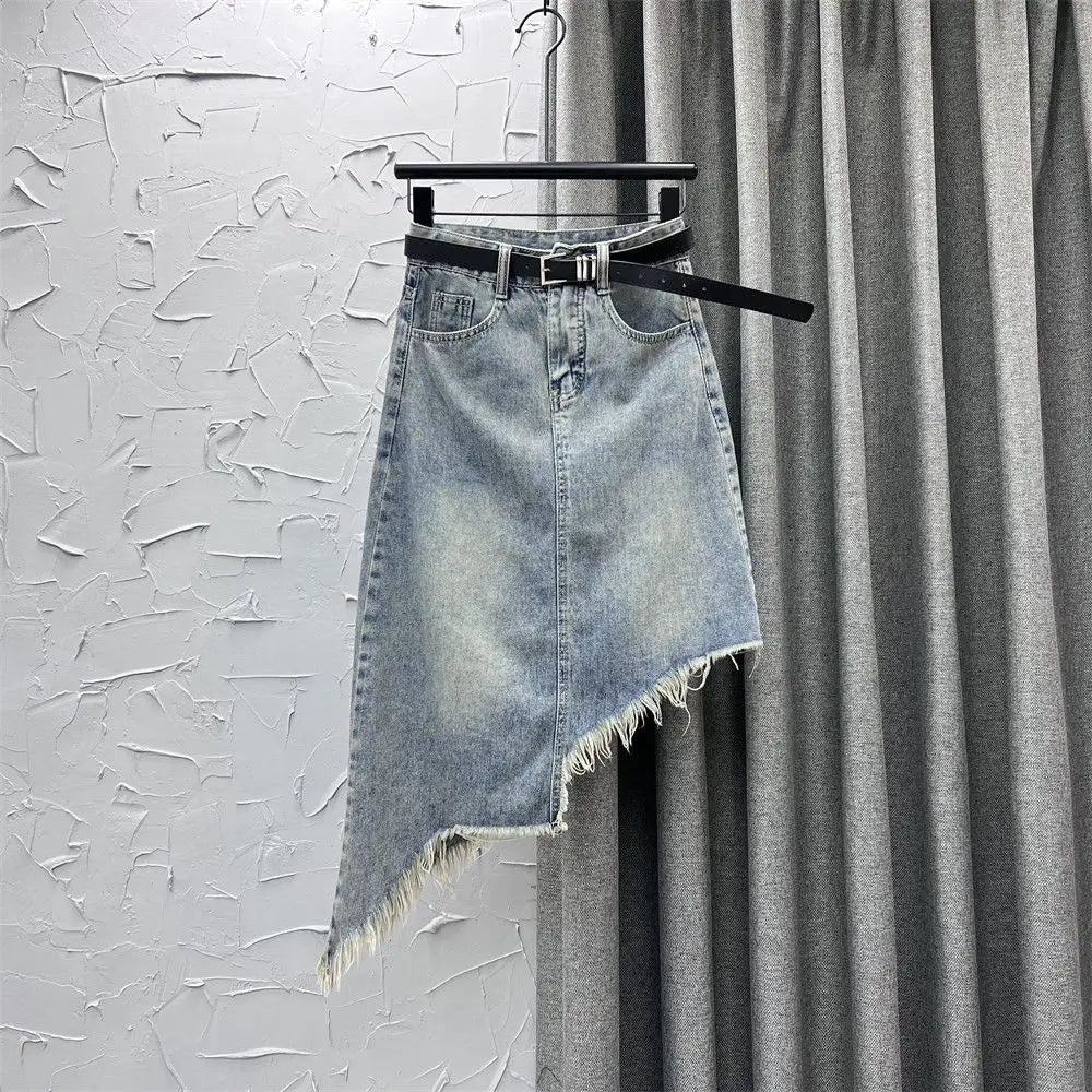 Female Jeans Skirts High Waist Fringe Midi Irregular Women's