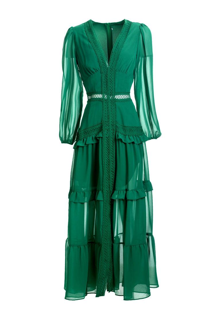 French fashion women's temperament slim hollow waist solid color long dress