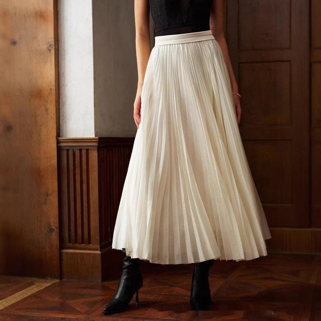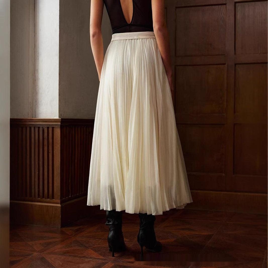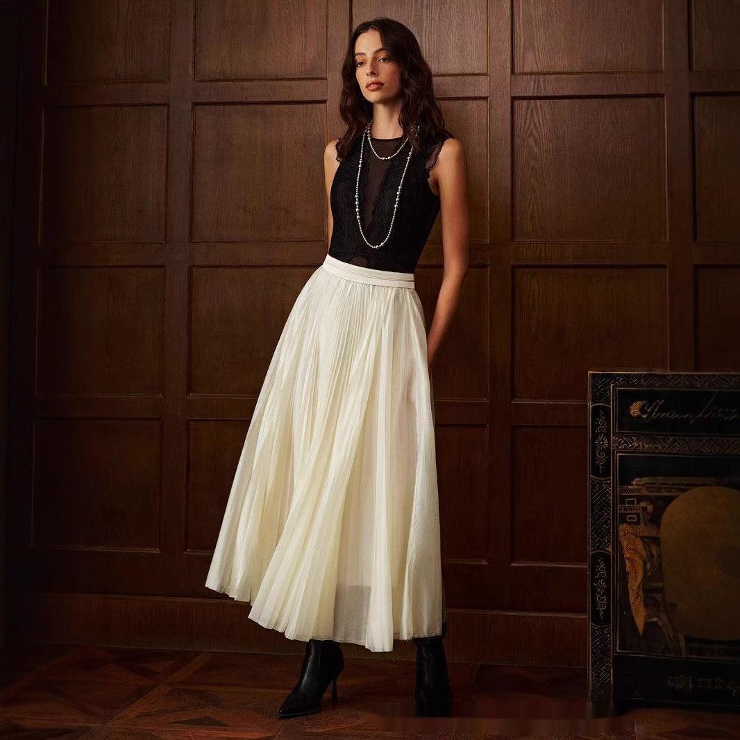French Style Pleated Stitching High Waist Skirt