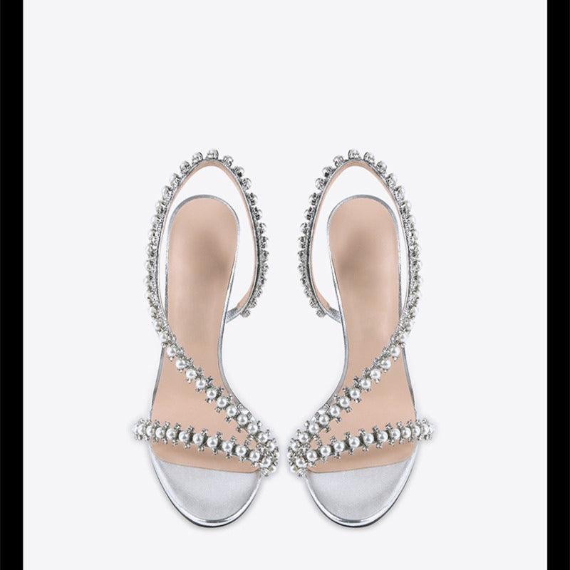 High Heeled Sandals, Womens Shoes, Fish Mouth Beaded Slim Heels, Womens Shoes, High Heels