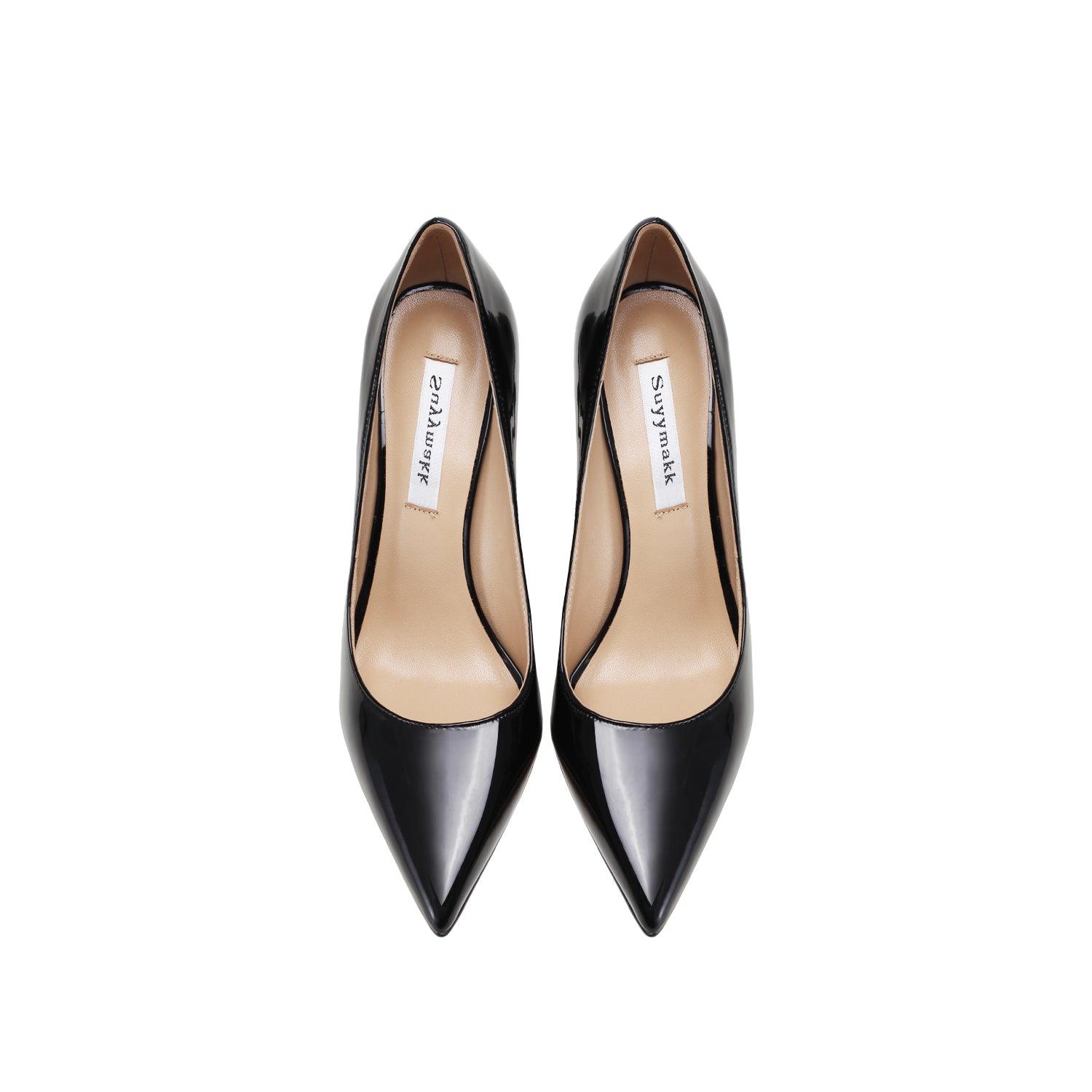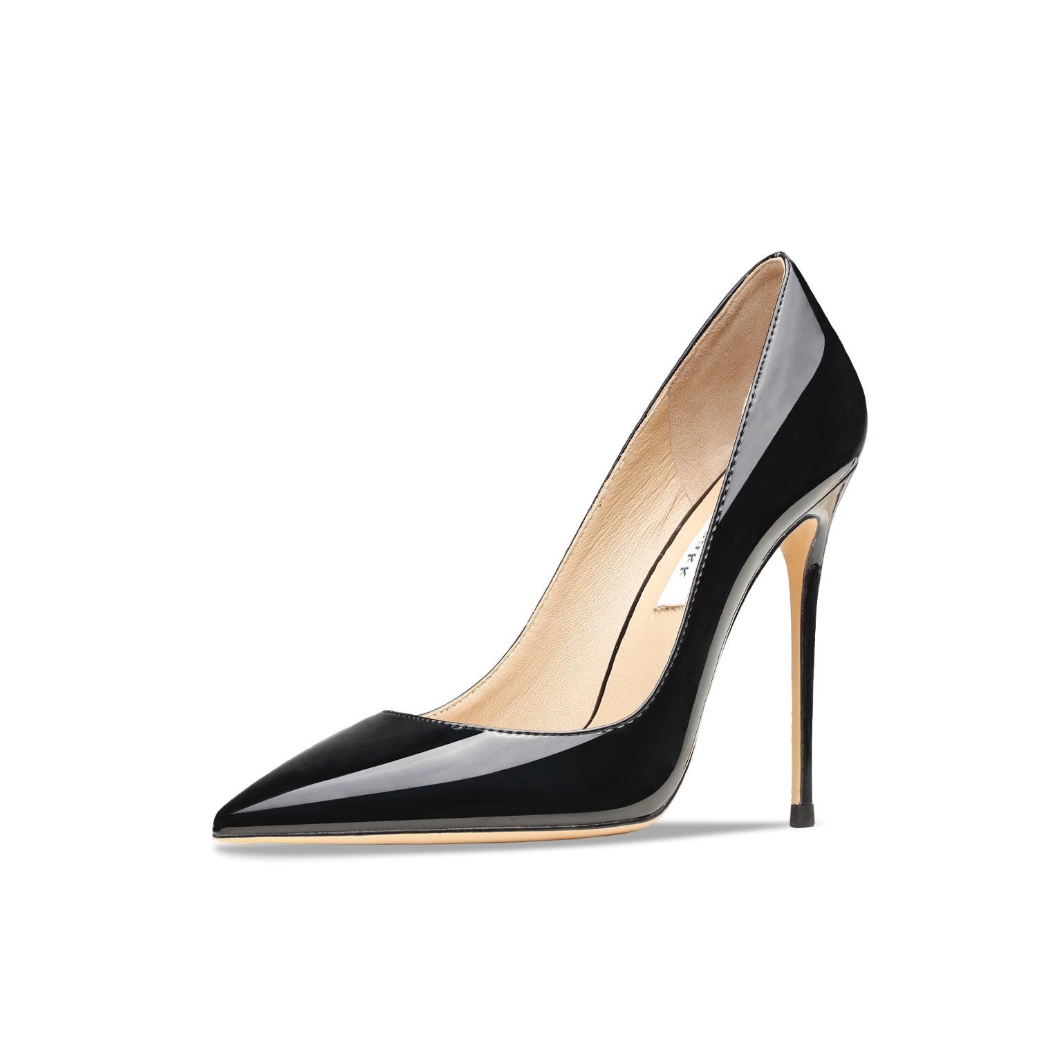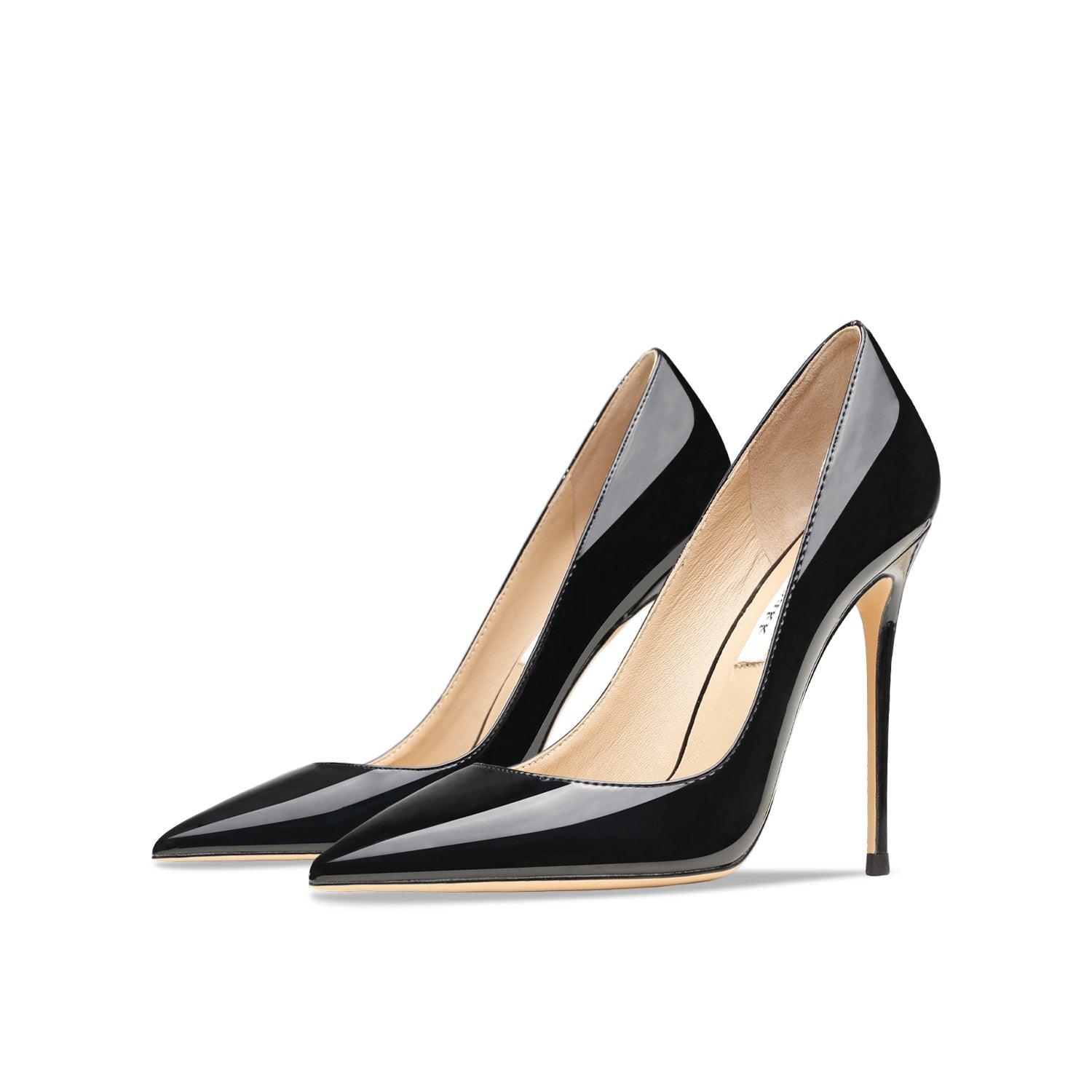 Leather Sheepskin Black High-Heeled Shoes Women's New Thin Heel Pointed Shallow Patent Leather Single Shoes Professional Work Shoes