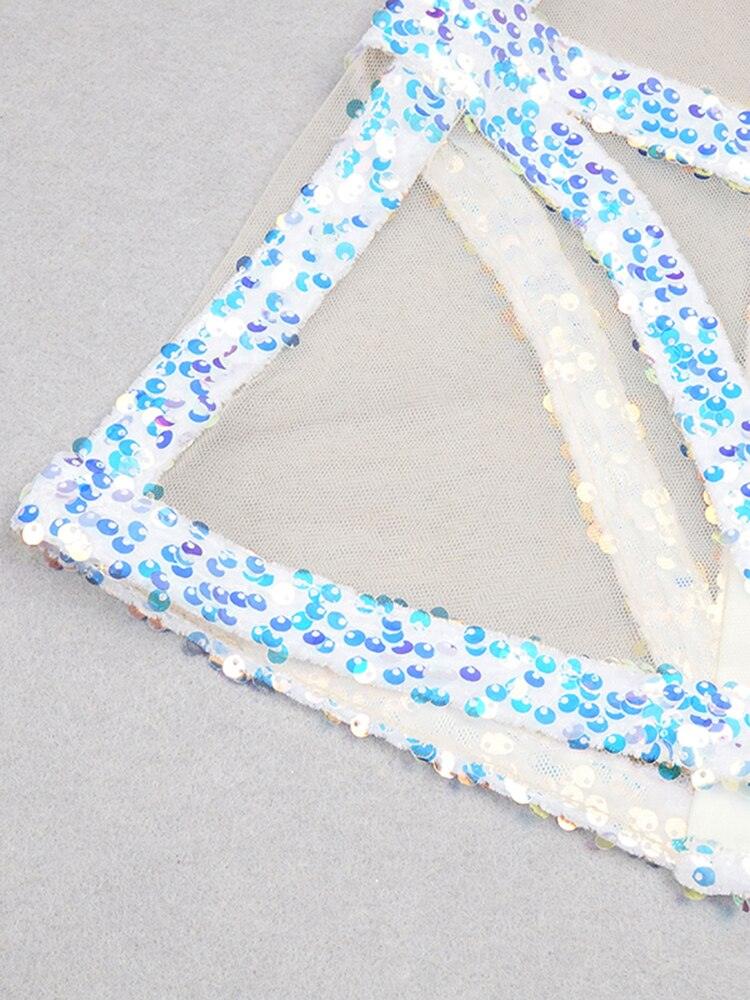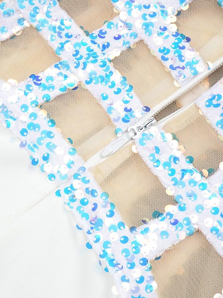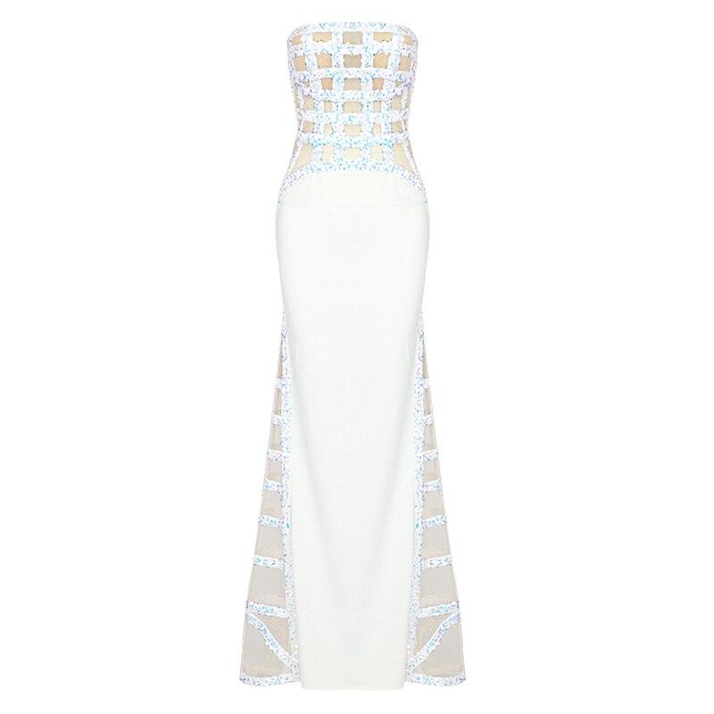Mesh TubeTop Off Shoulder White Sequin Dress Design Slim Fit Mopping Evening Dress