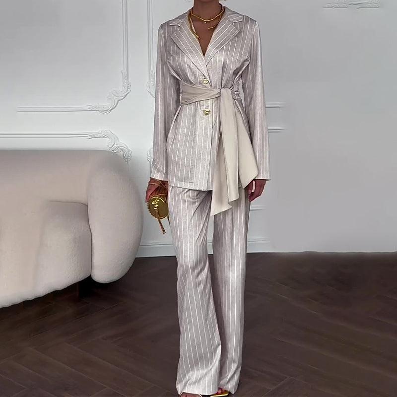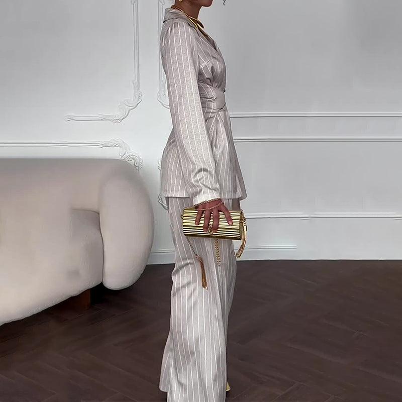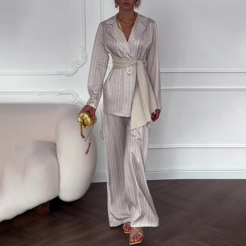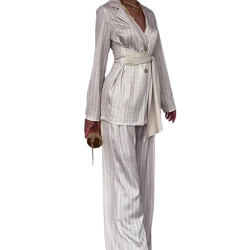 New women's fashion comfortable high waist lace-up shirt high waist straight pants