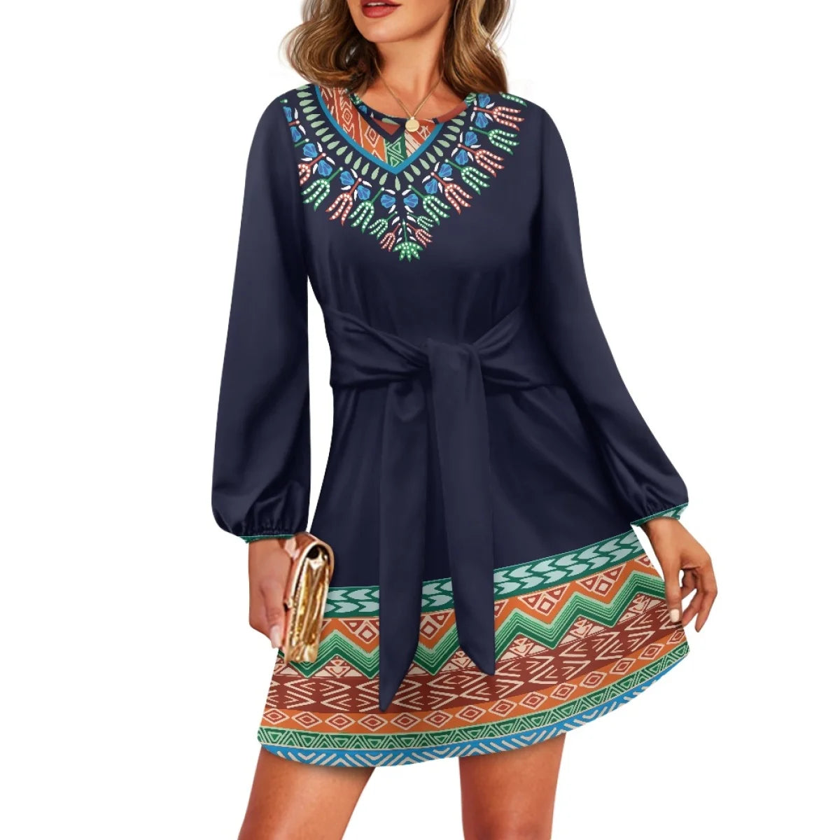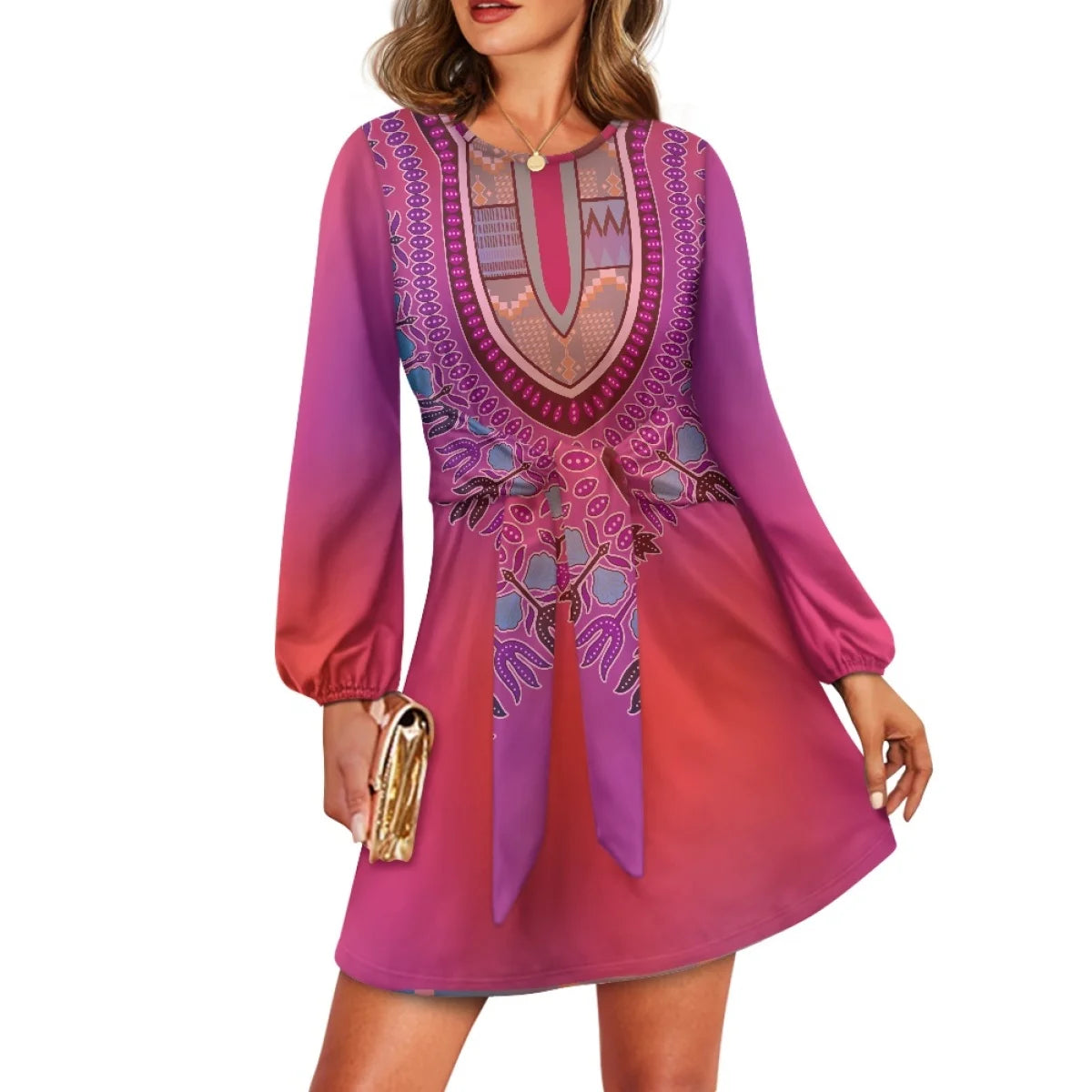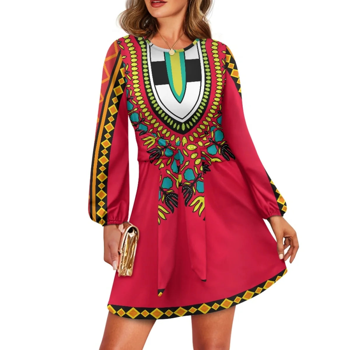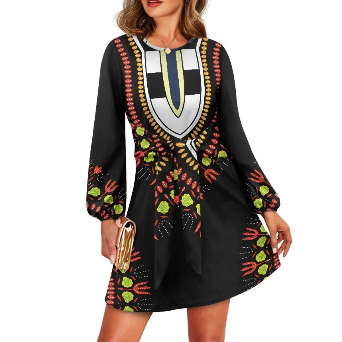 O neck women trumpet sleeve dress Polynesian tropical style women formal elegant evening dress 2025