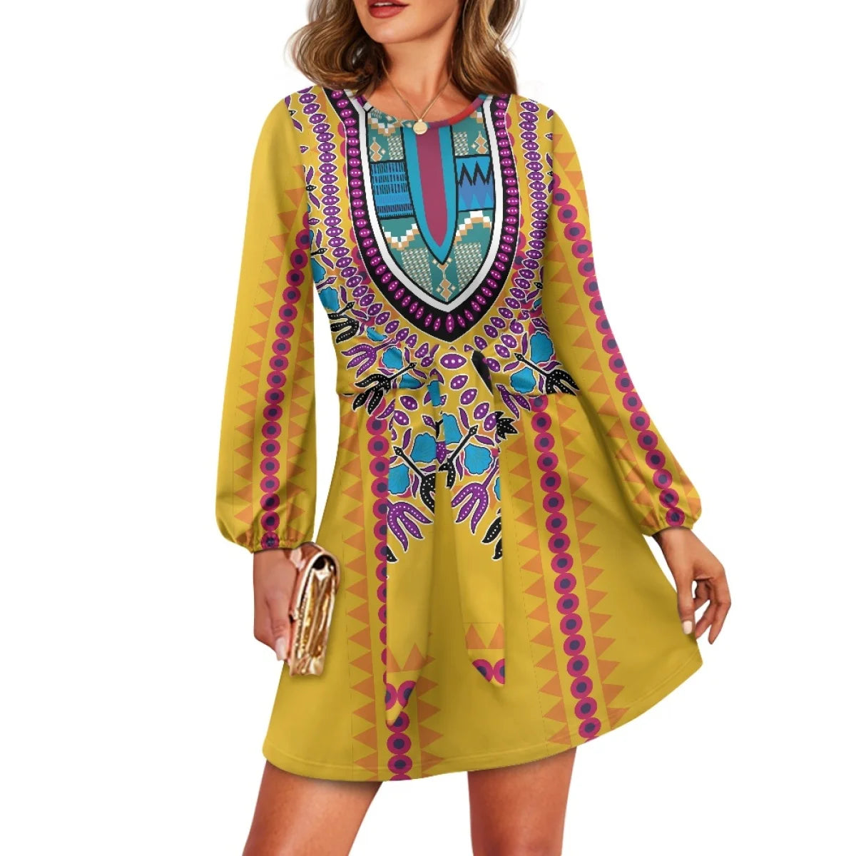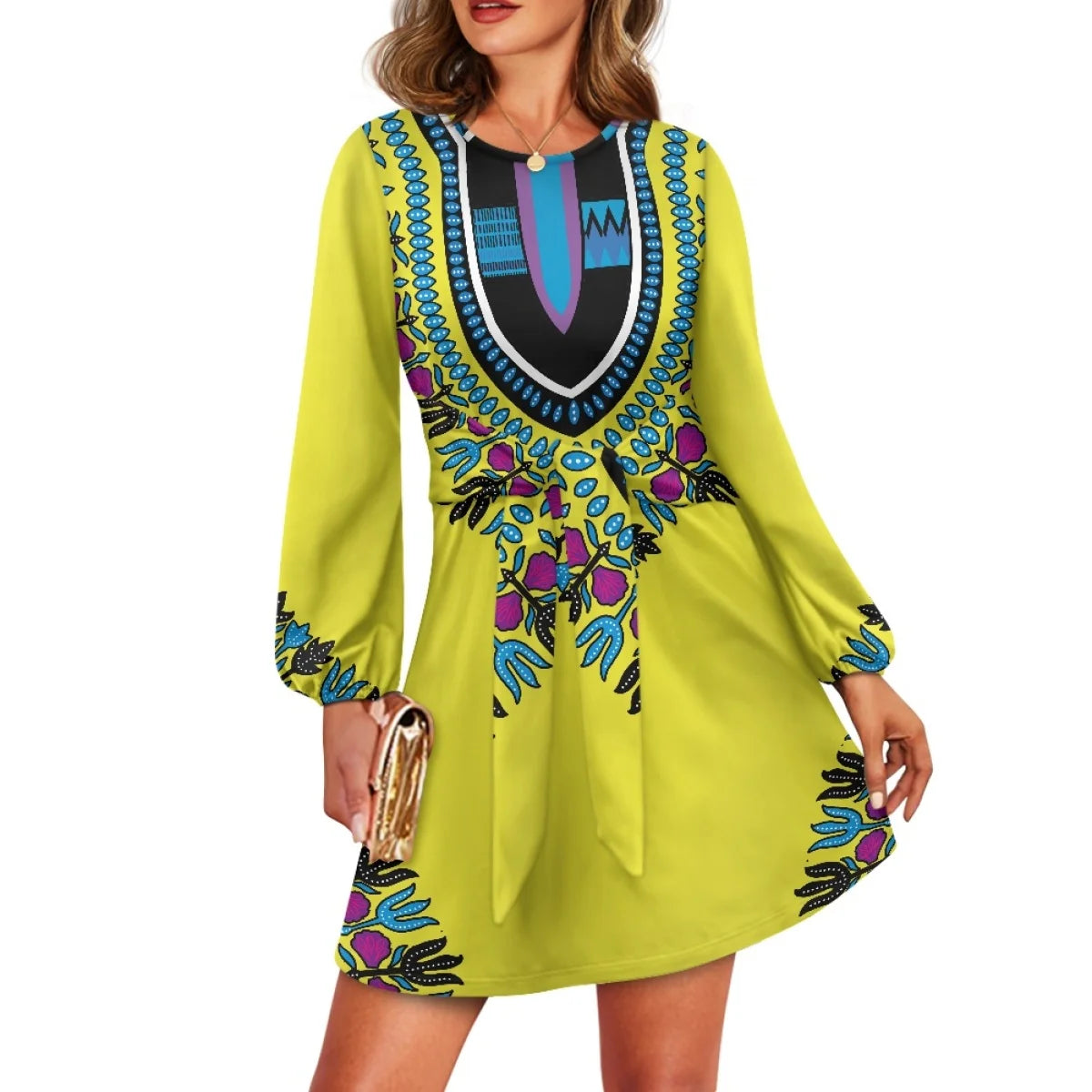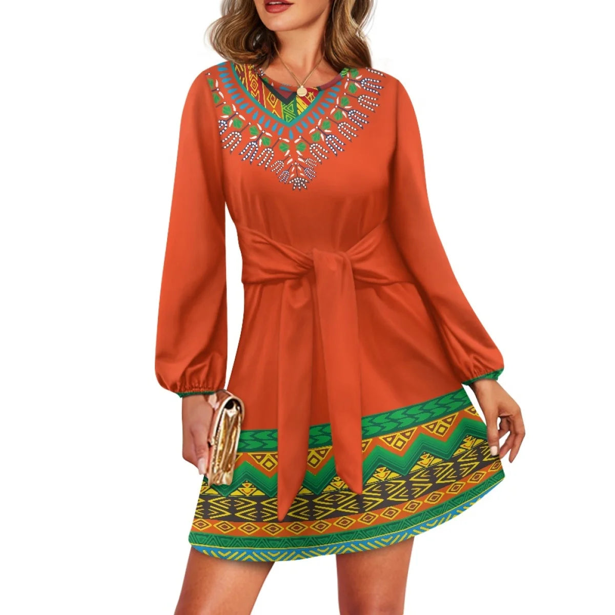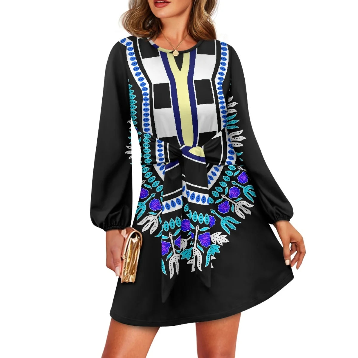 O neck women trumpet sleeve dress Polynesian tropical style women formal elegant evening dress 2025