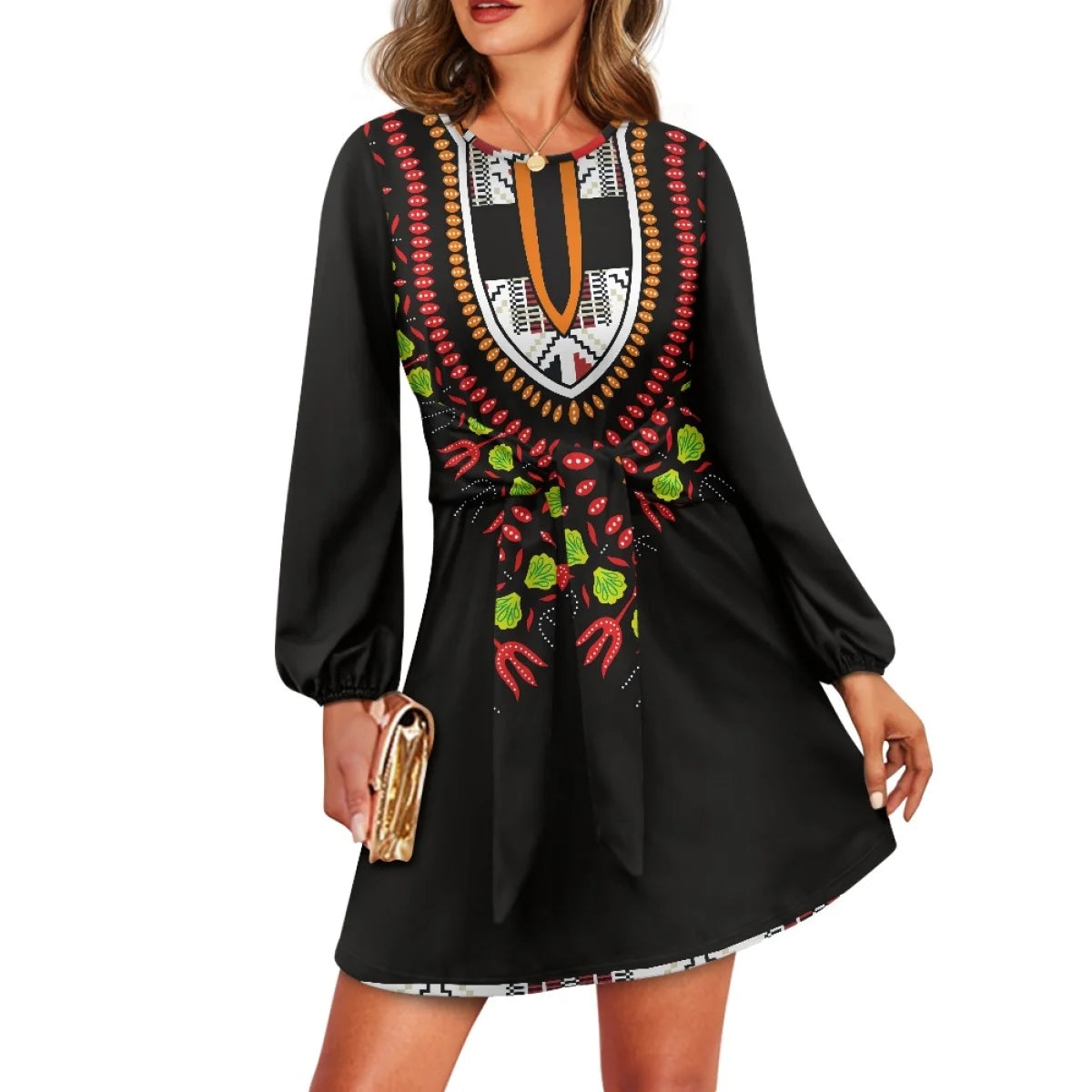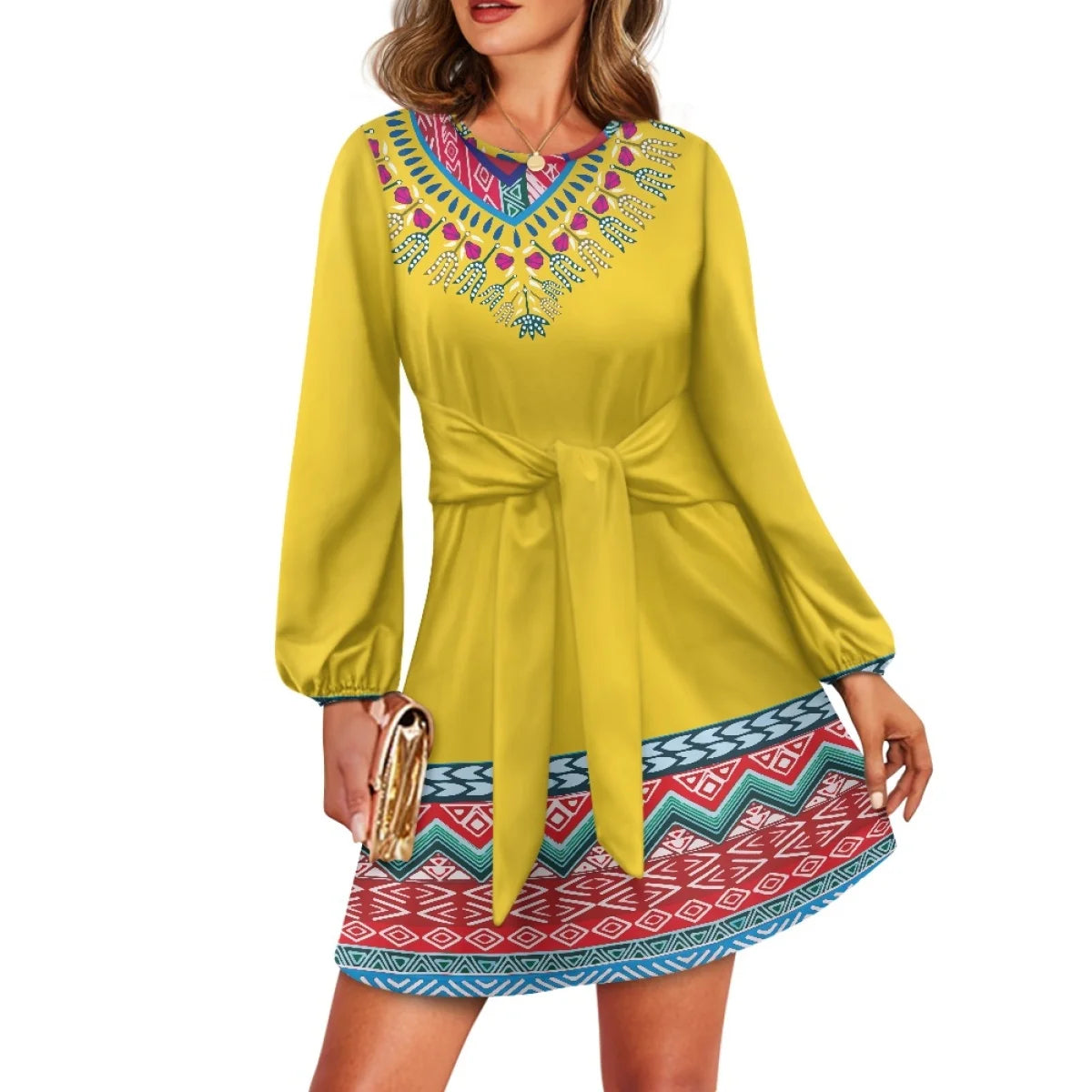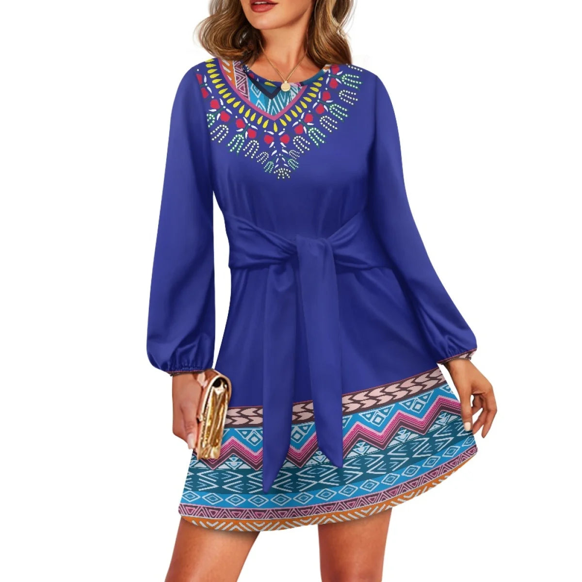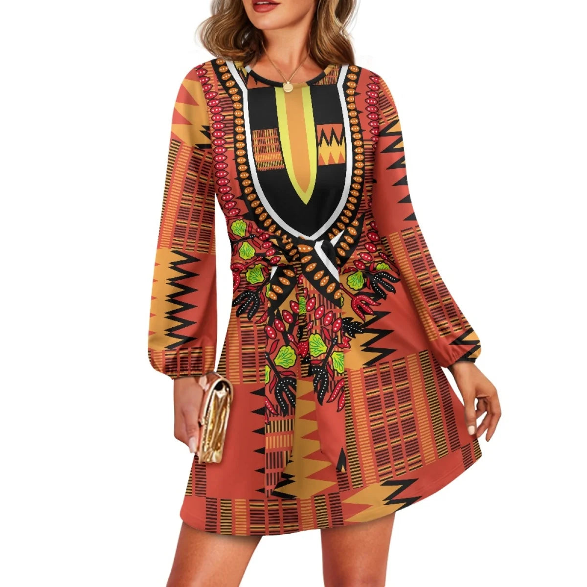 O neck women trumpet sleeve dress Polynesian tropical style women formal elegant evening dress 2025