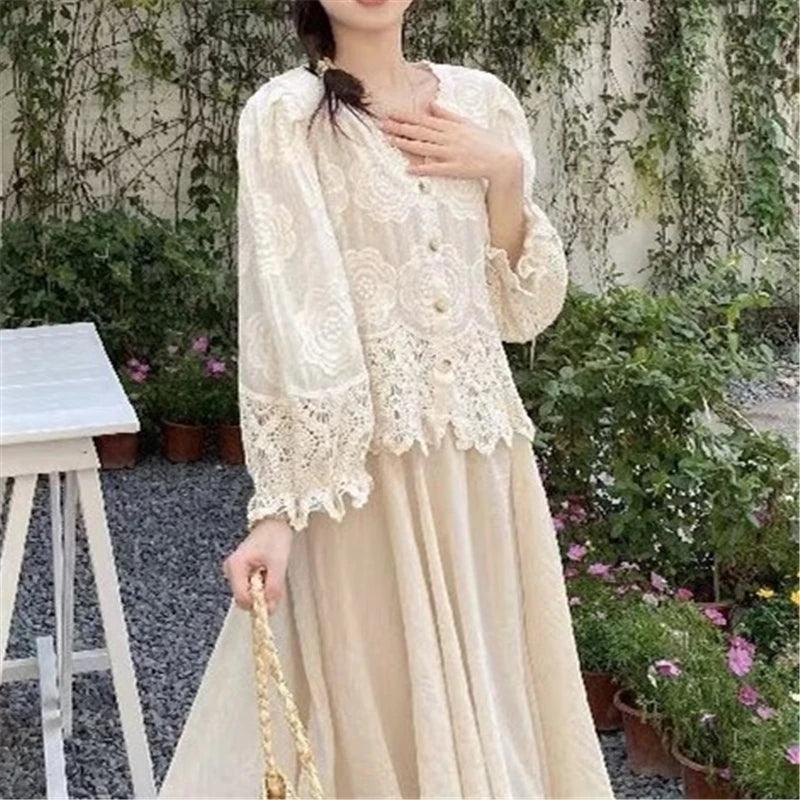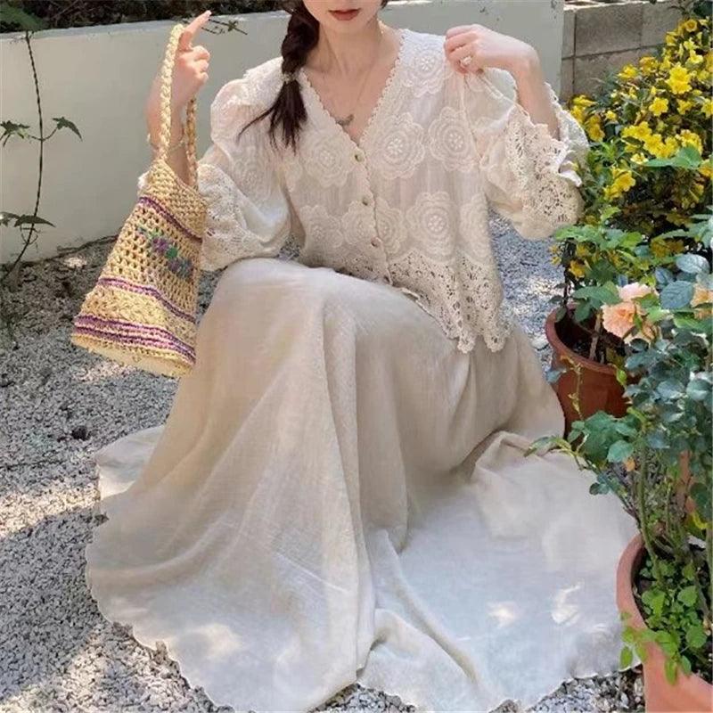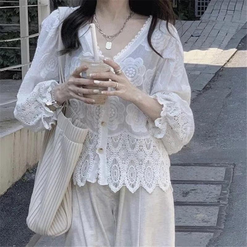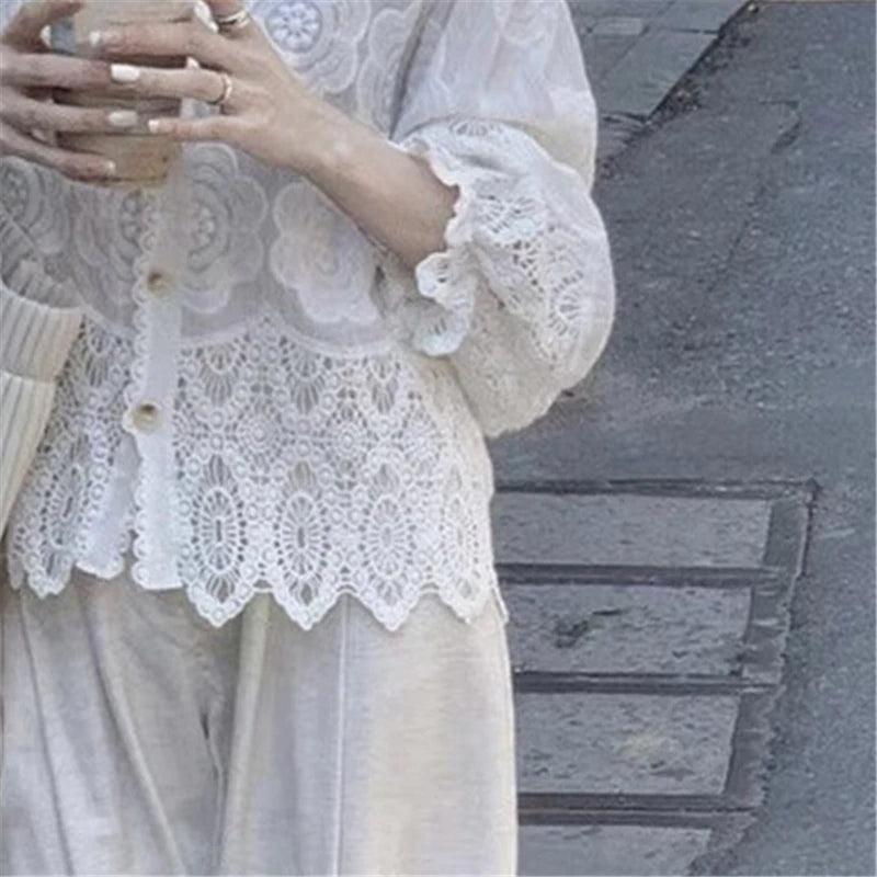 Vintage Embroidery Women's Blouses 2025 Casual Lace Long Sleeve