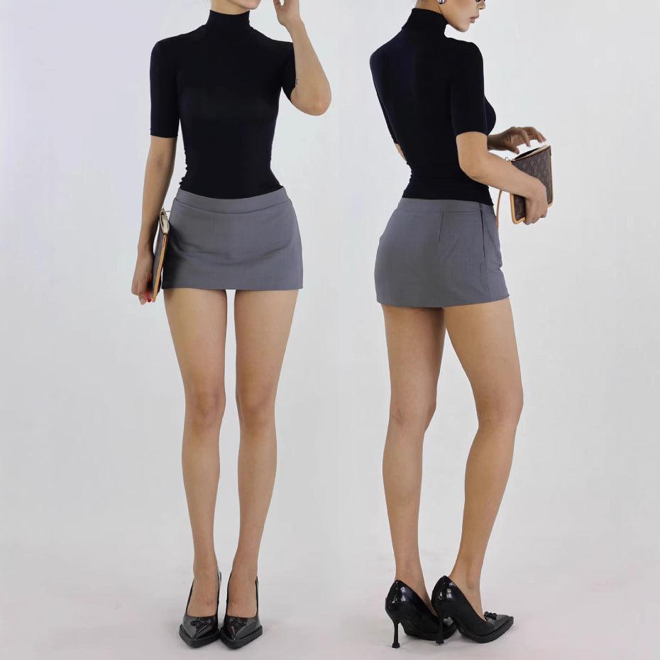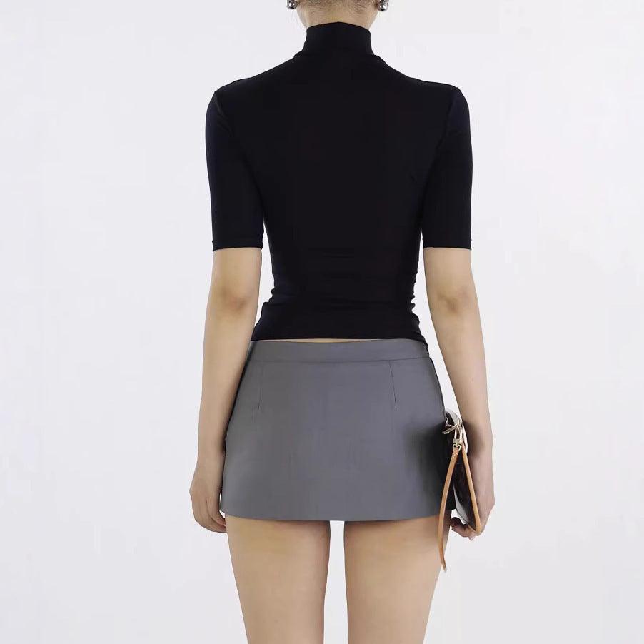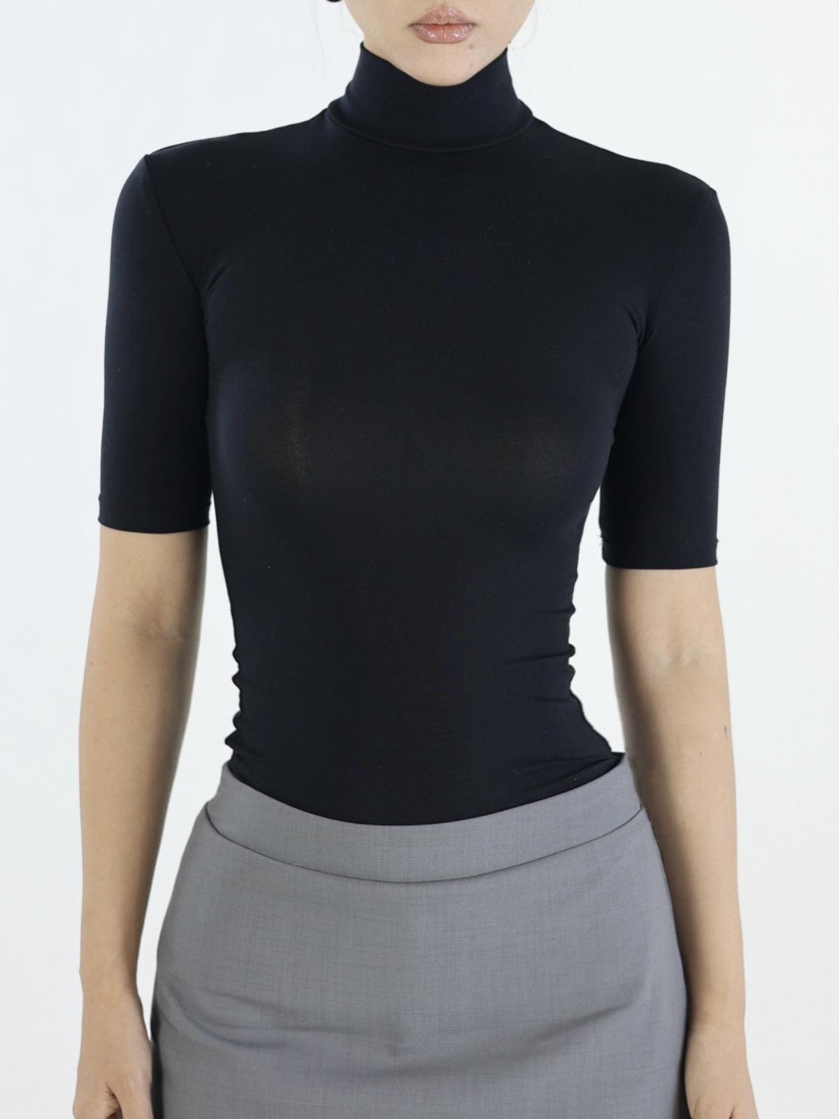 Retro Tencel Lycra Skin-friendly Turtleneck Shoulder Half Sleeve