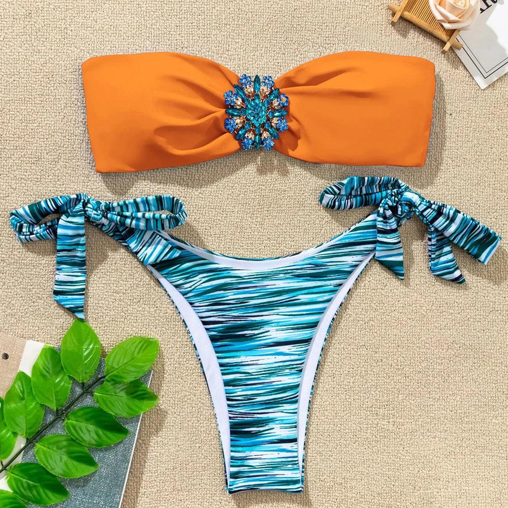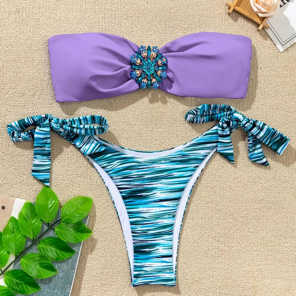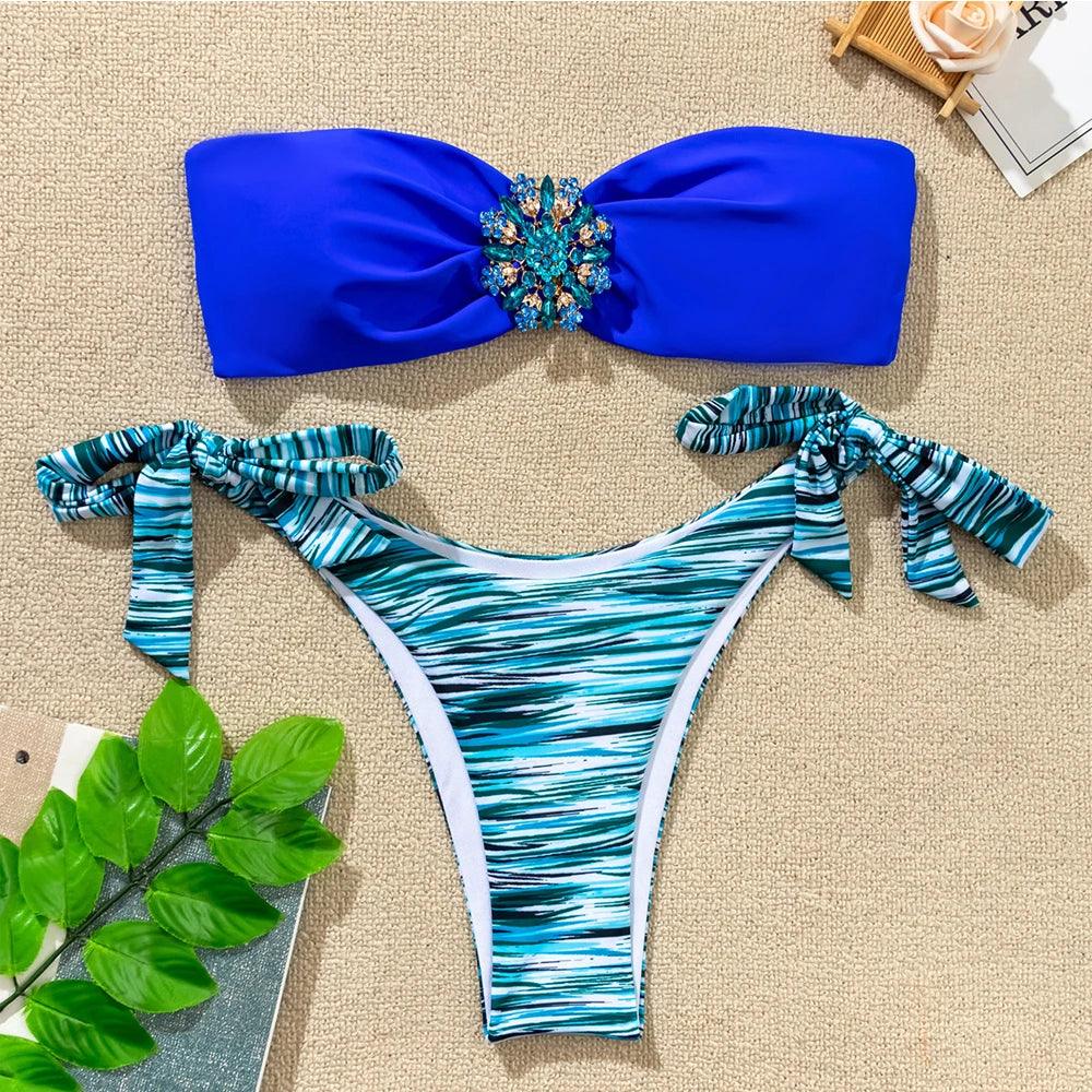 Rhinestone Flower Accessories Swimsuit Women 2-piece Mini Bikini