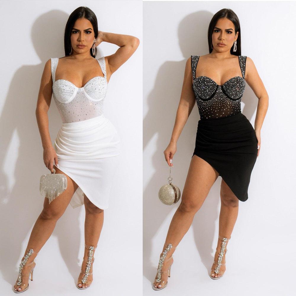 Rhinestone Sling Backless Two-piece Set Two Colors