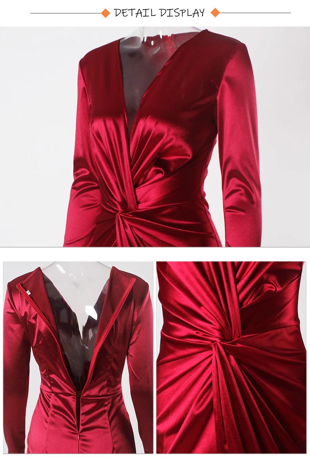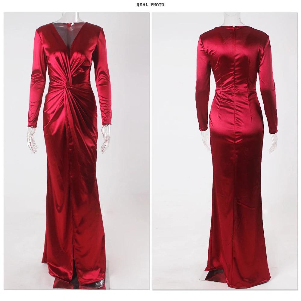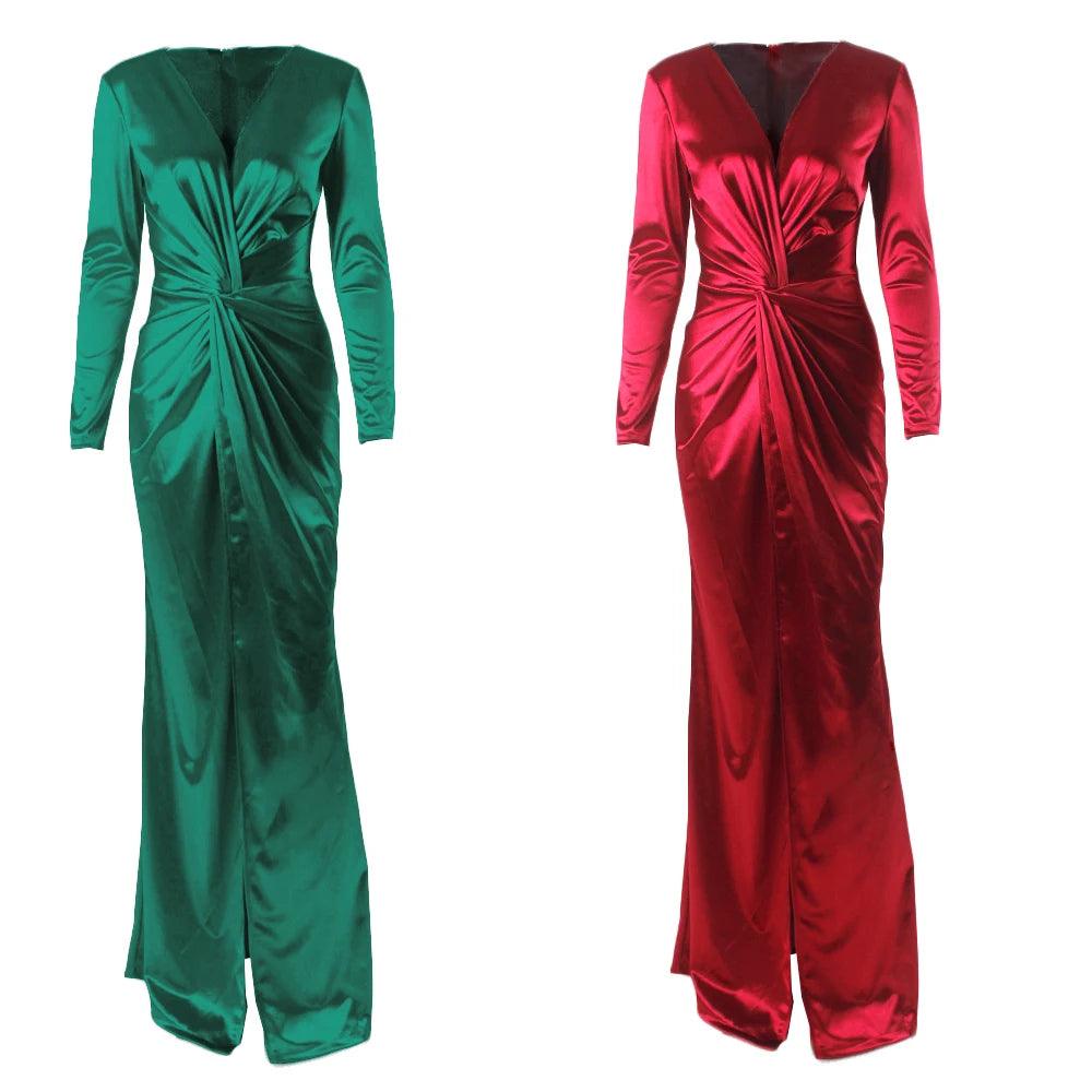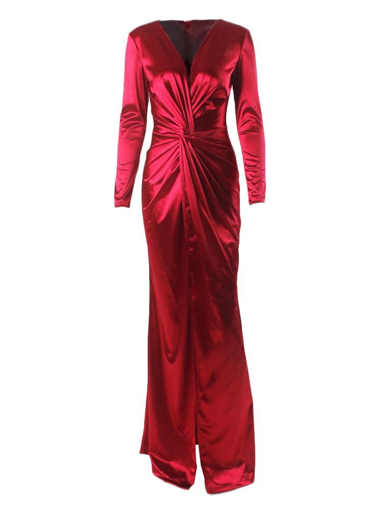 Romagic Knot Ruched V Neck Long Sleeve Cocktail Prom Dresses