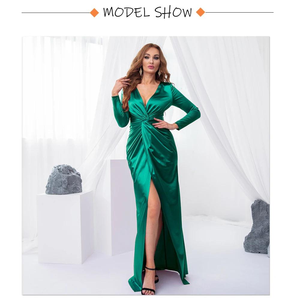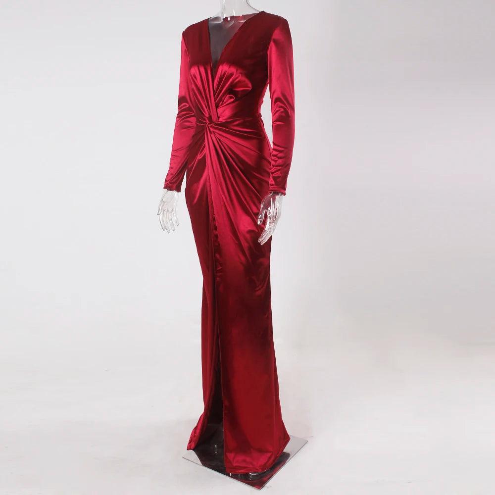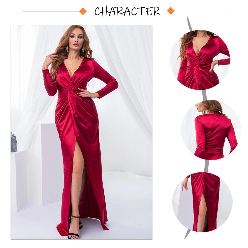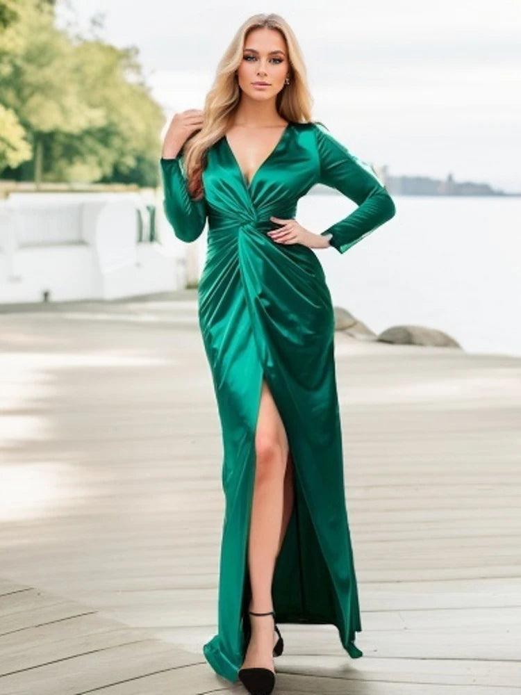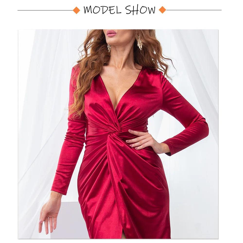 Romagic Knot Ruched V Neck Long Sleeve Cocktail Prom Dresses