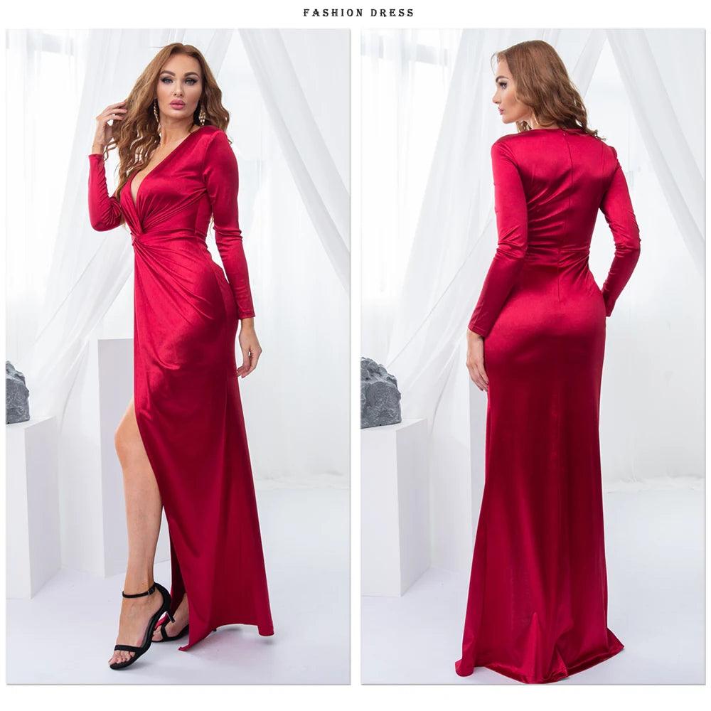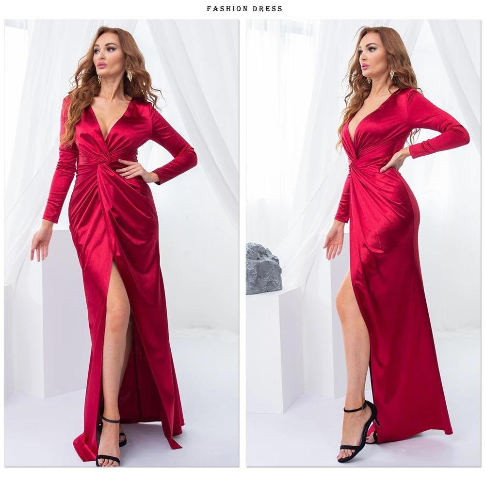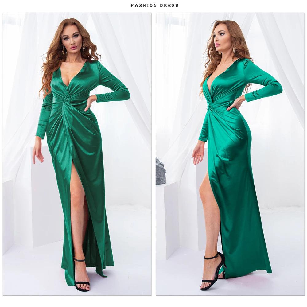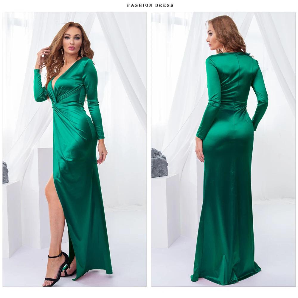 Romagic Knot Ruched V Neck Long Sleeve Cocktail Prom Dresses
