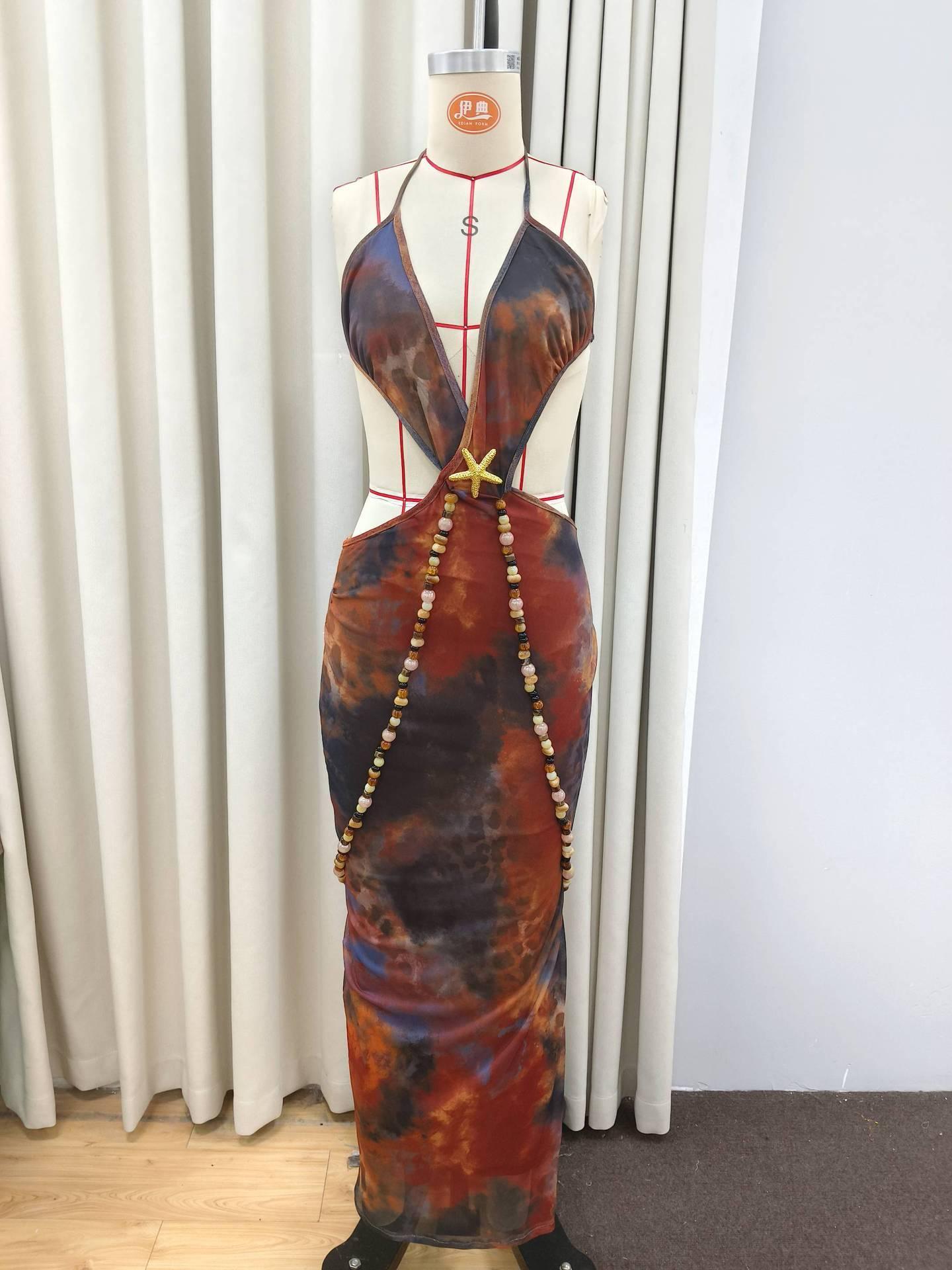 Seaside Holiday Halter Design Sleeveless Dress Women