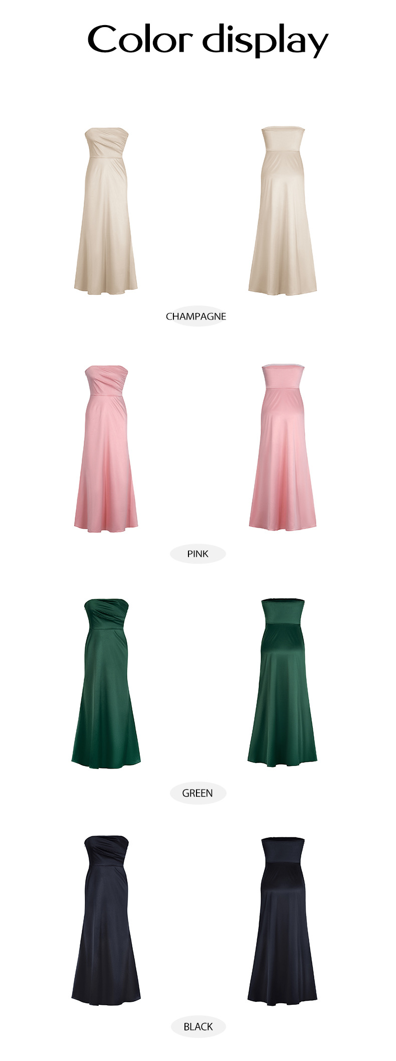 Slimming solid color strapless evening dress dress long skirt