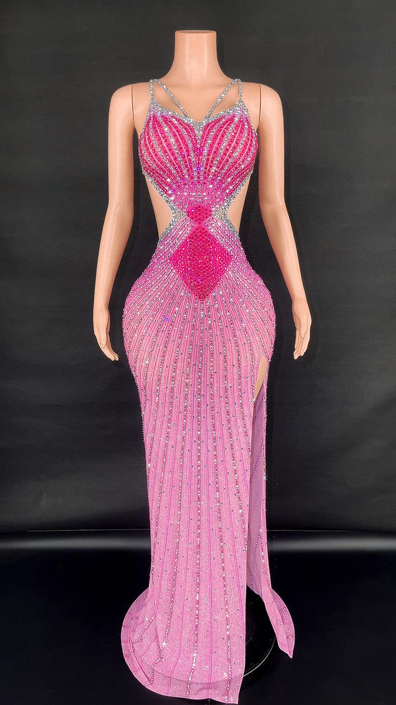 Sling Super Shiny Light Diamond Cinched Bodycon Sleeveless Dress Party