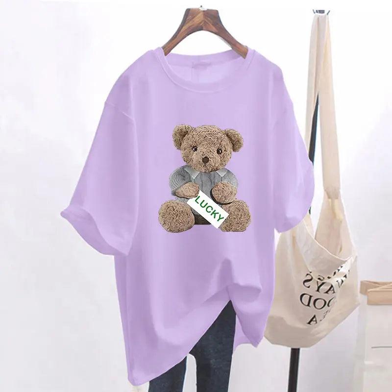 Summer Fashion Animal Bear Print Basic T-shirts Women Casual Pure Cotton