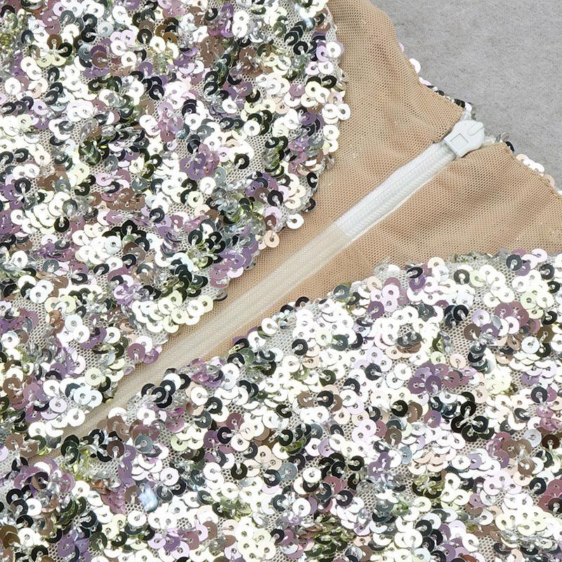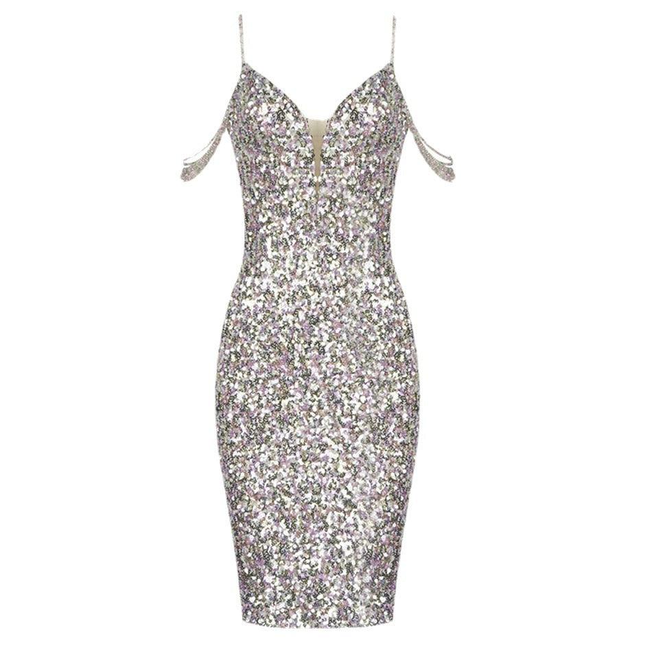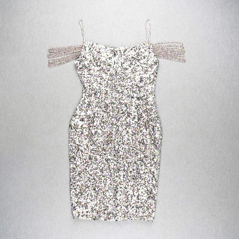 halter V-neck colorful sequins fashion hot girls wear a dress with irregular hips
