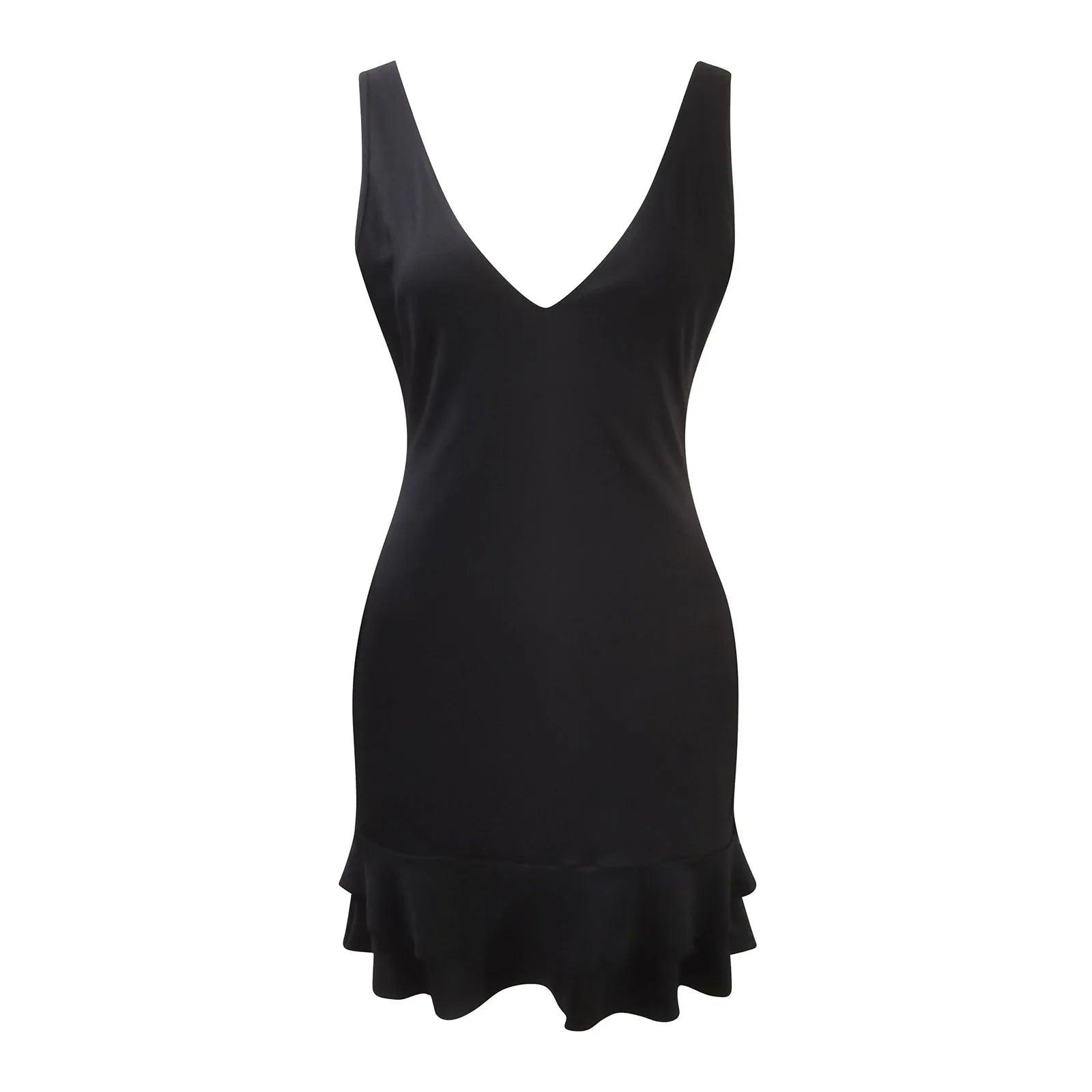 Women's Deep V-Neck Sleeveless Dress, Backless, Ruffled, Monochromatic, Hip-Hugging