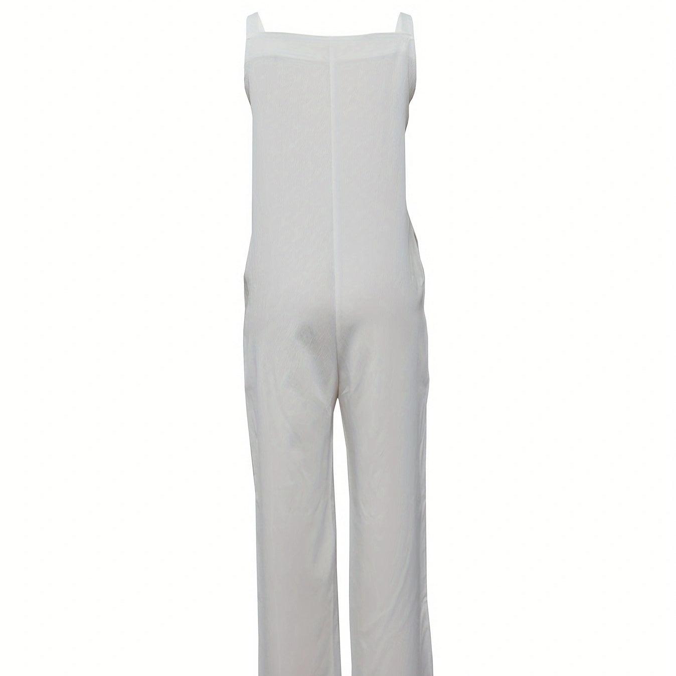 Casual Feather Print, Sleeveless Bib, Vacation Lazy Jumpsuit, Jumpsuit
