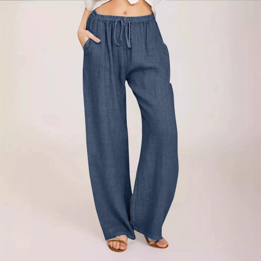 Vintage Cotton Linen Pants Sets Women Elegant Lace UpV-neck